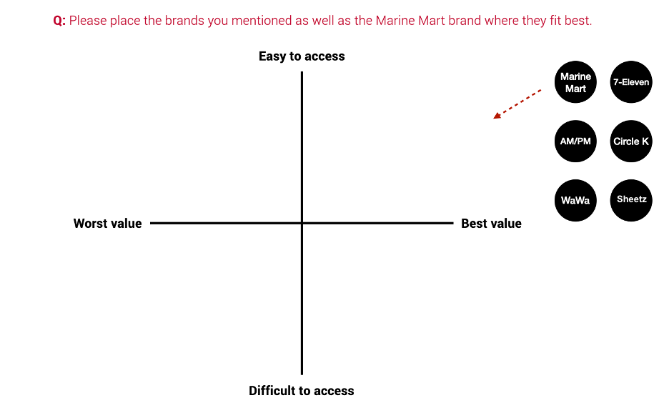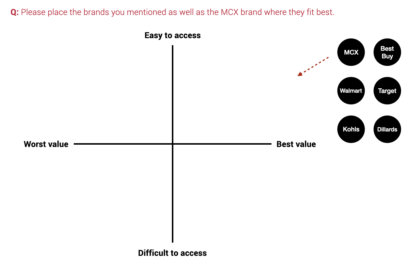 Quadrant Exercise: This exercise will be used with many of the categories to provide insight into the relative position of the MCCS offering versus other brands in the consideration set.