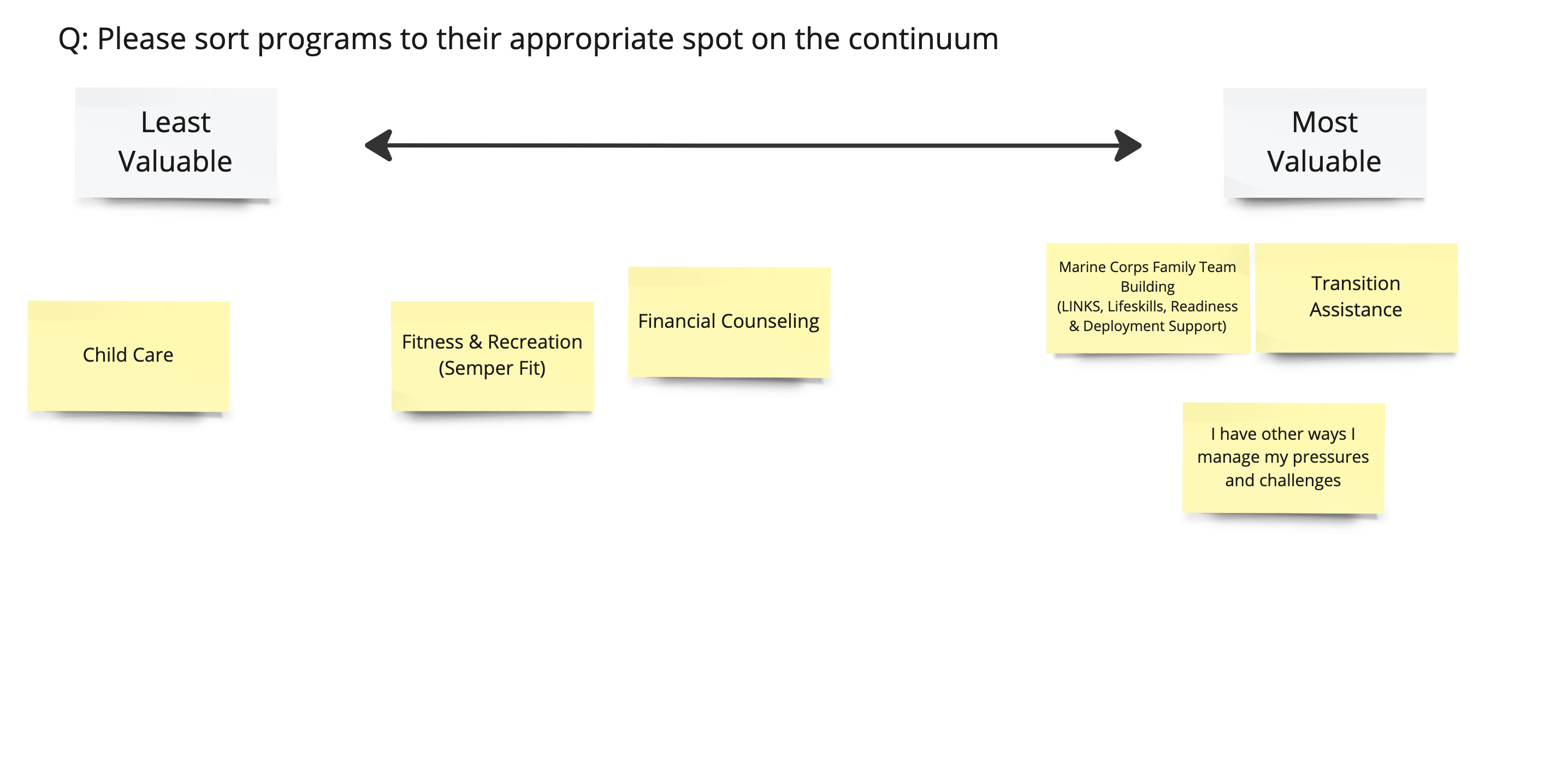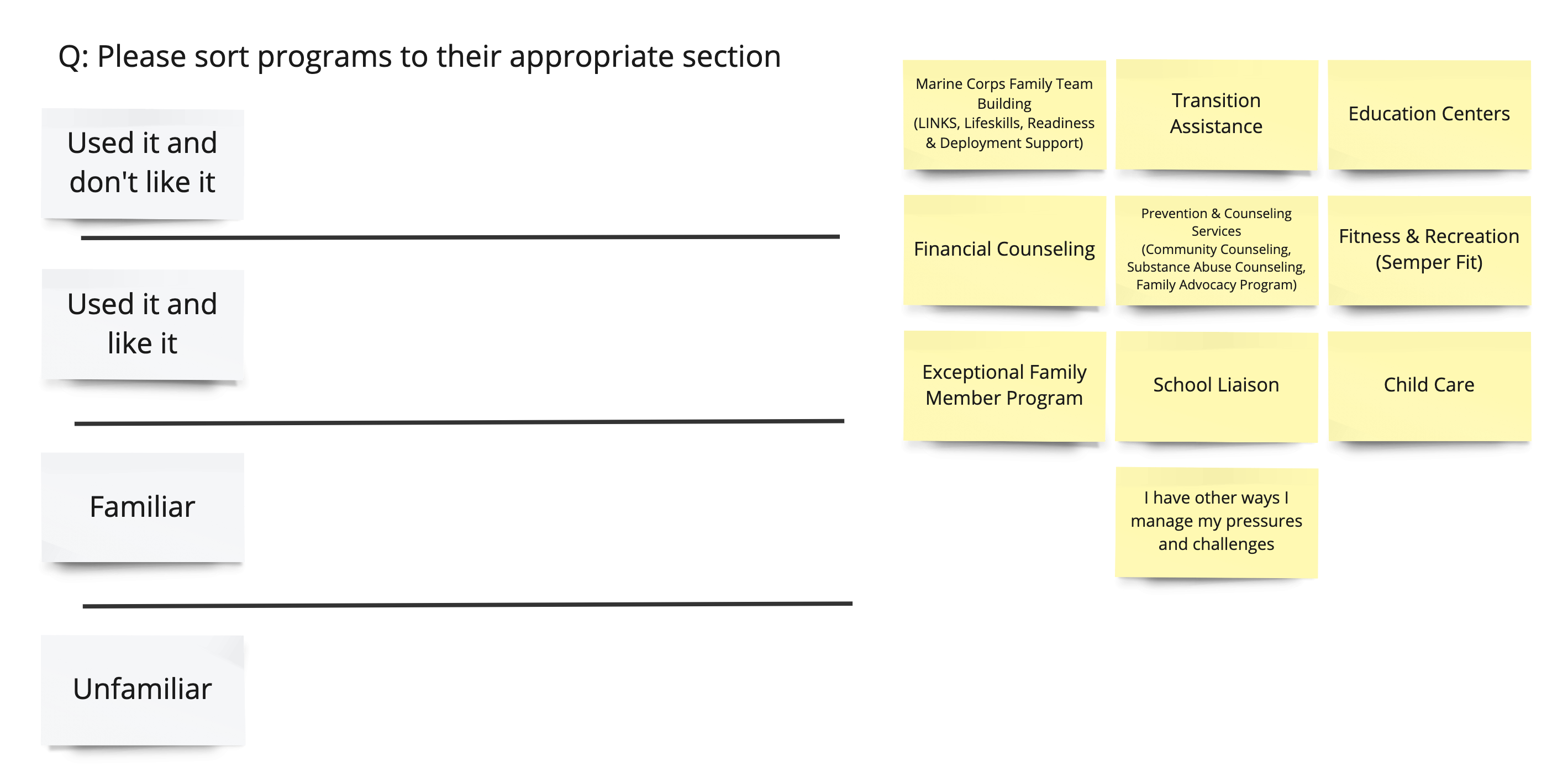 Ask: These cards represent a number of programs that the MCCS makes available to Marines and their families. Which programs have you heard about and what is your perception of the program?