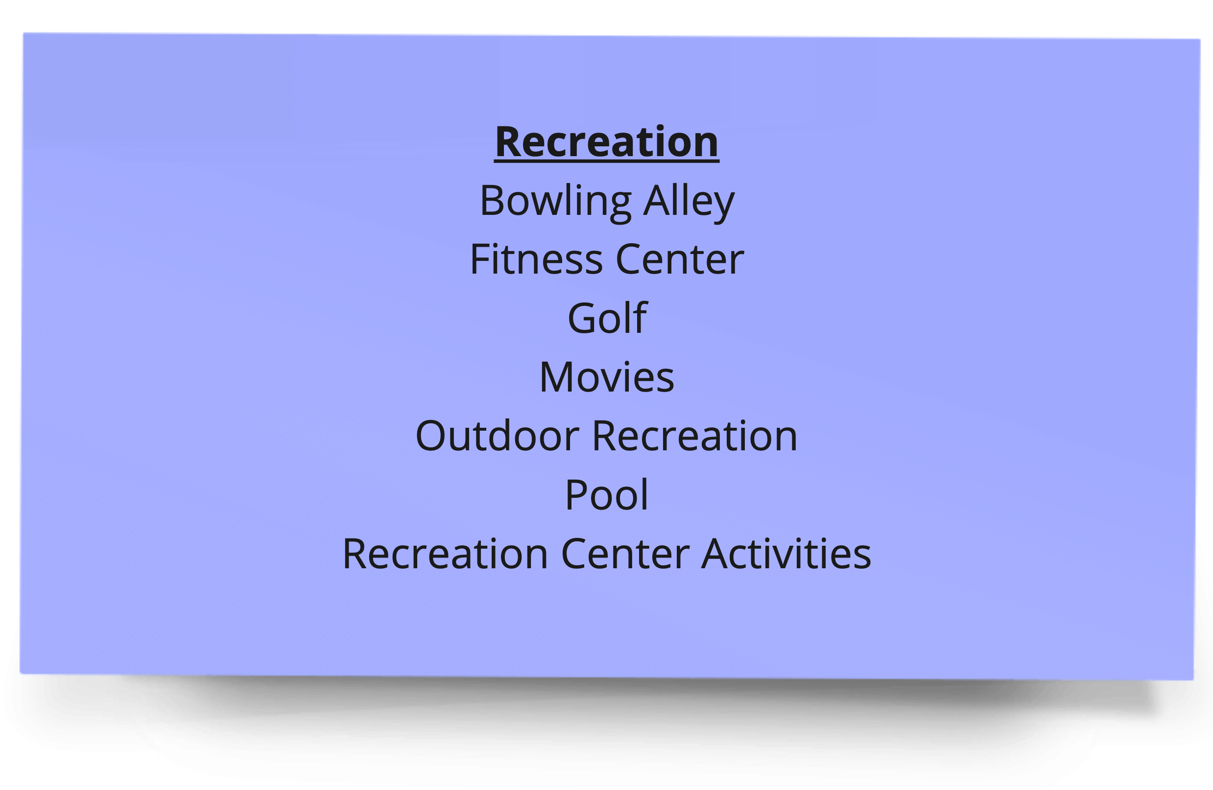 RECREATION (Show them the visual of the offerings to focus them on the category)