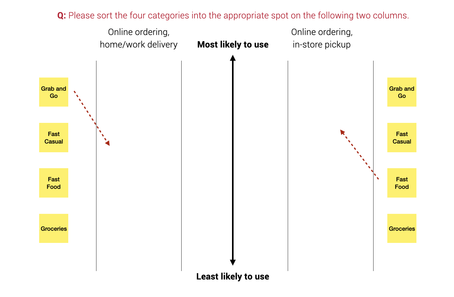 When thinking about delivery (to where you live, not the gate), please place the various food categories discussed in their proper location on the following chart:
