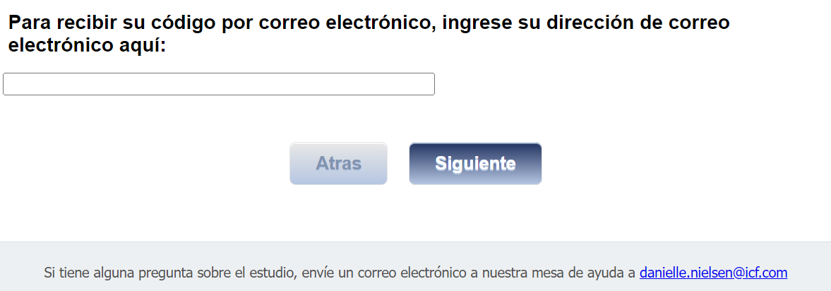 Footer Text: Si tiene alguna pregunta sobre el estudio, envíe un correo electrónico a nuestra mesa de ayuda a <danielle.nielsen@icf.com> |