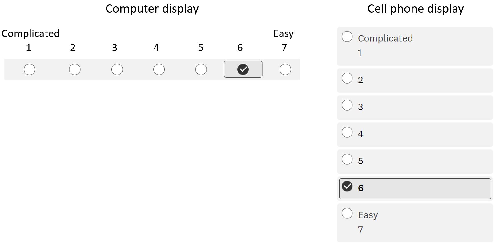 Example: Both of the responses below would mean that you rate the eIPP information system as more "Easy" than "Complicated."