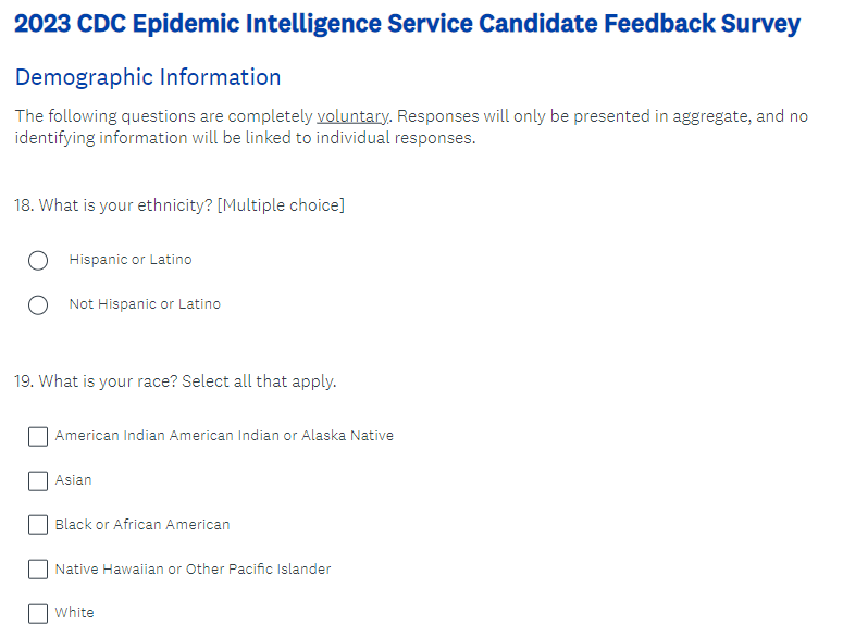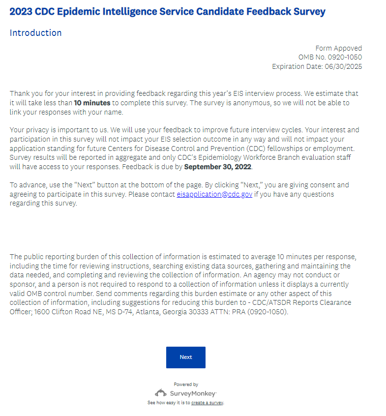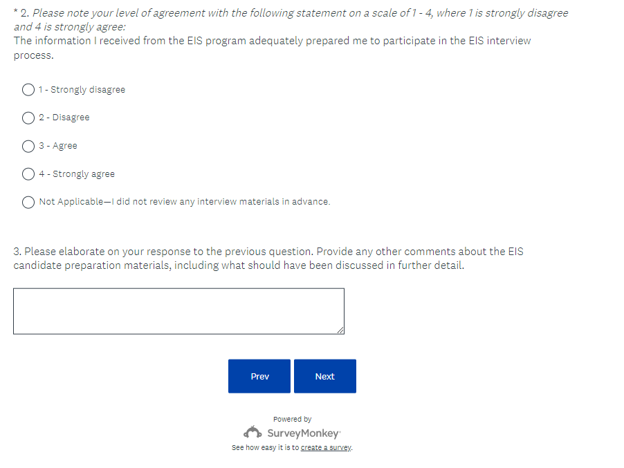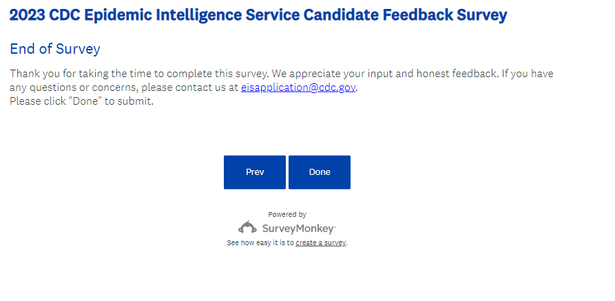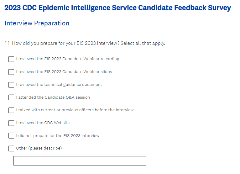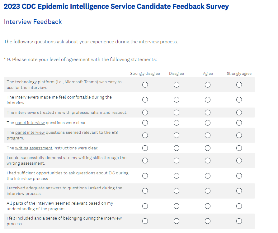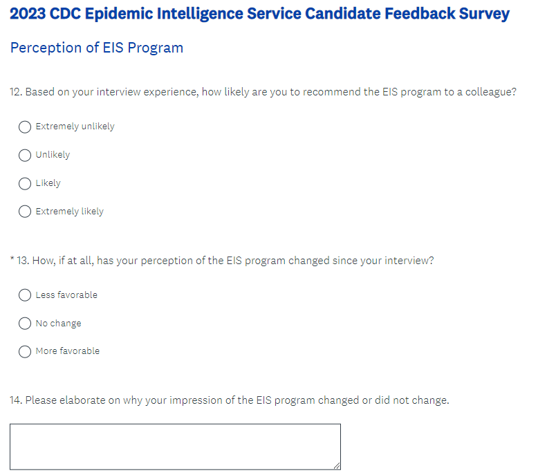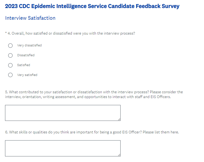 Epidemic Intelligence Service Candidate Feedback Survey Screenshots