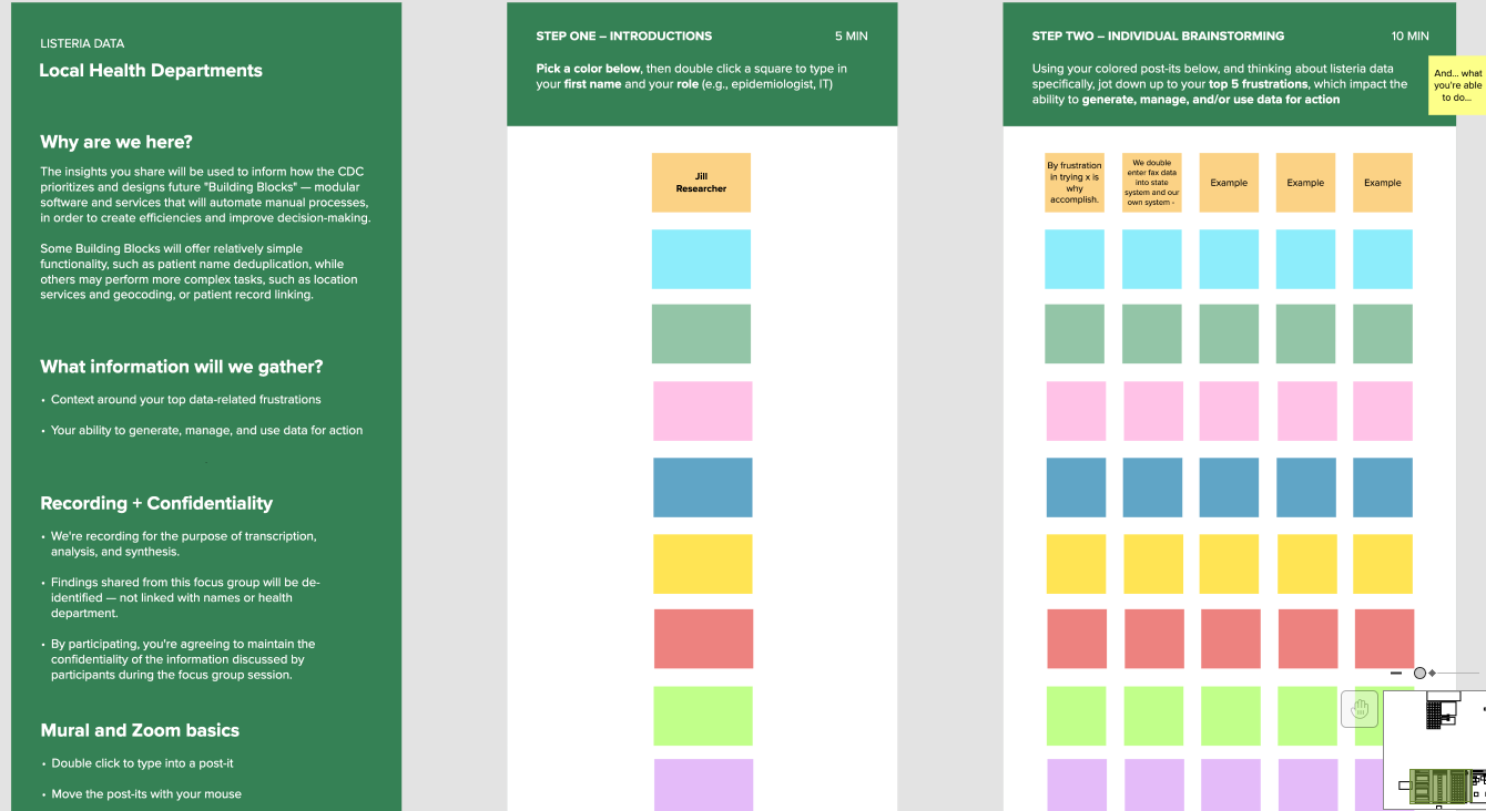 We’ll initially have a topic-centered approach for these groups with a specific focus on: childhood lead poisoning, Legionnaires' disease, listeria, HIV, and Data Exchange. (*Data Exchange is the platform through which CDC will exchange data with partners and the public; for Data Exchange focus groups, we're seeking to hear from jurisdictions who report directly to the CDC.).