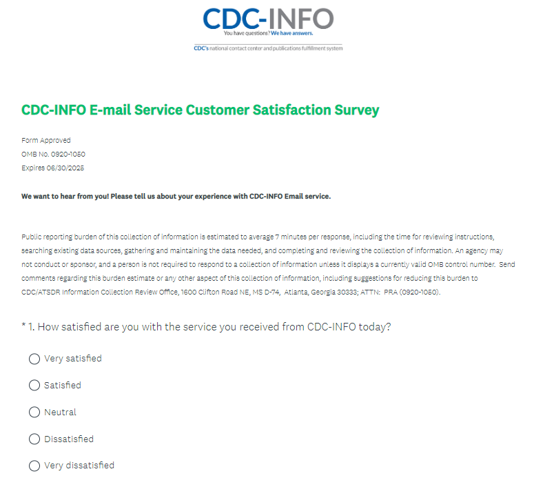 0920-1050 CDC-INFO Email Service - Customer Satisfaction Survey -