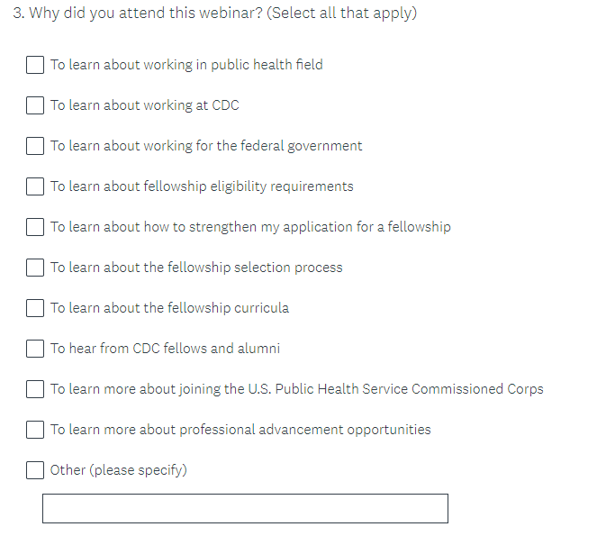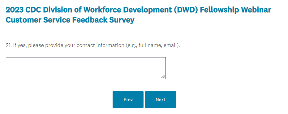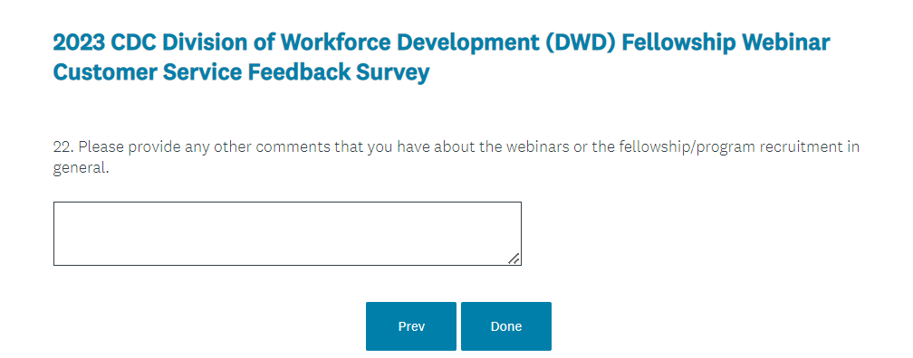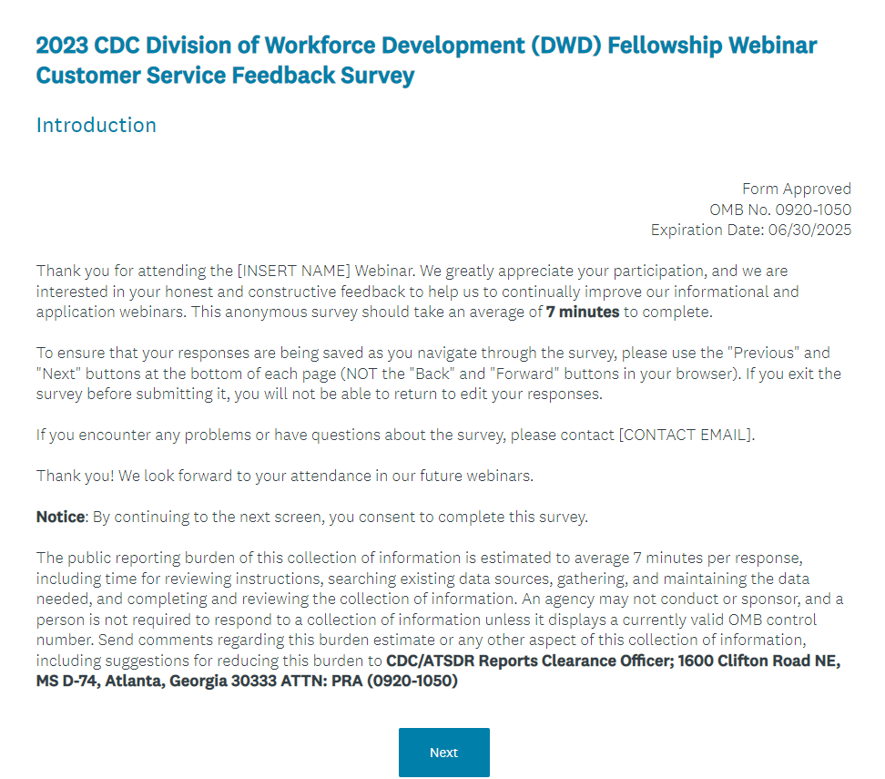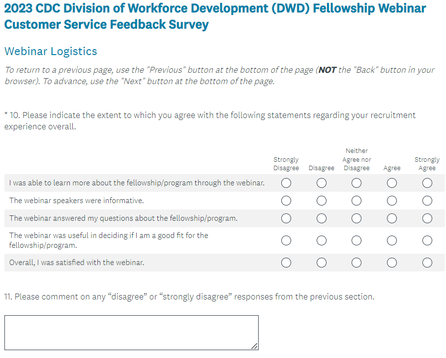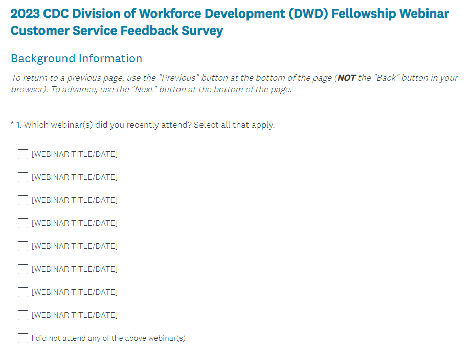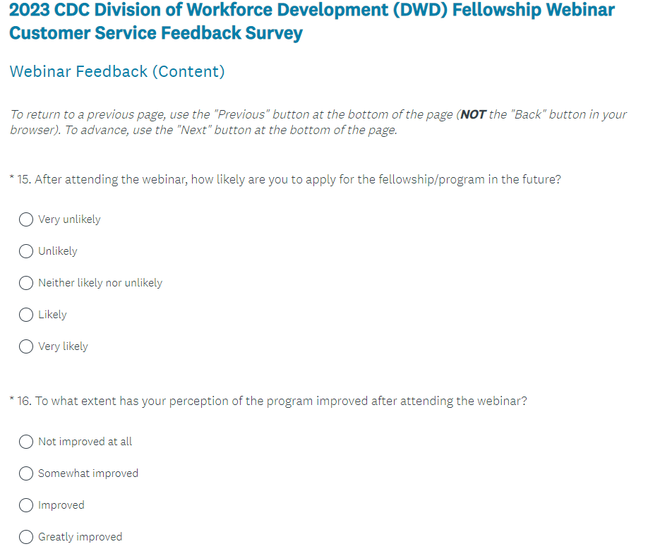 Attachment 2. 2023 CDC DWD Fellowship Webinar Customer Service Feedback Survey Screenshots
