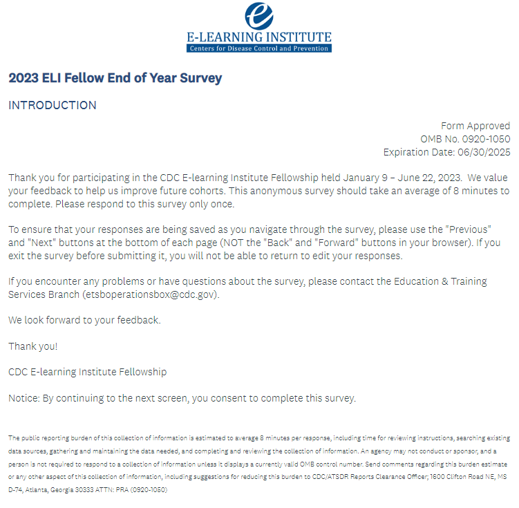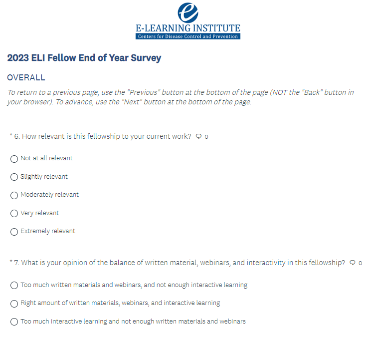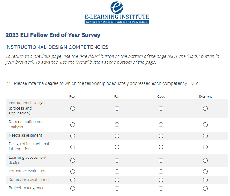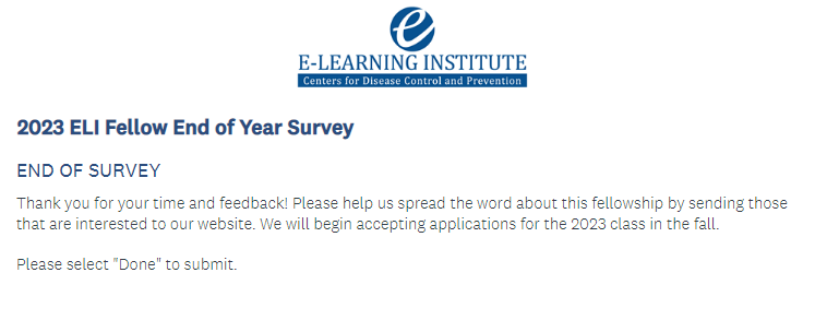 Attachment 2: ELI Fellow End of Year Survey – Survey Monkey