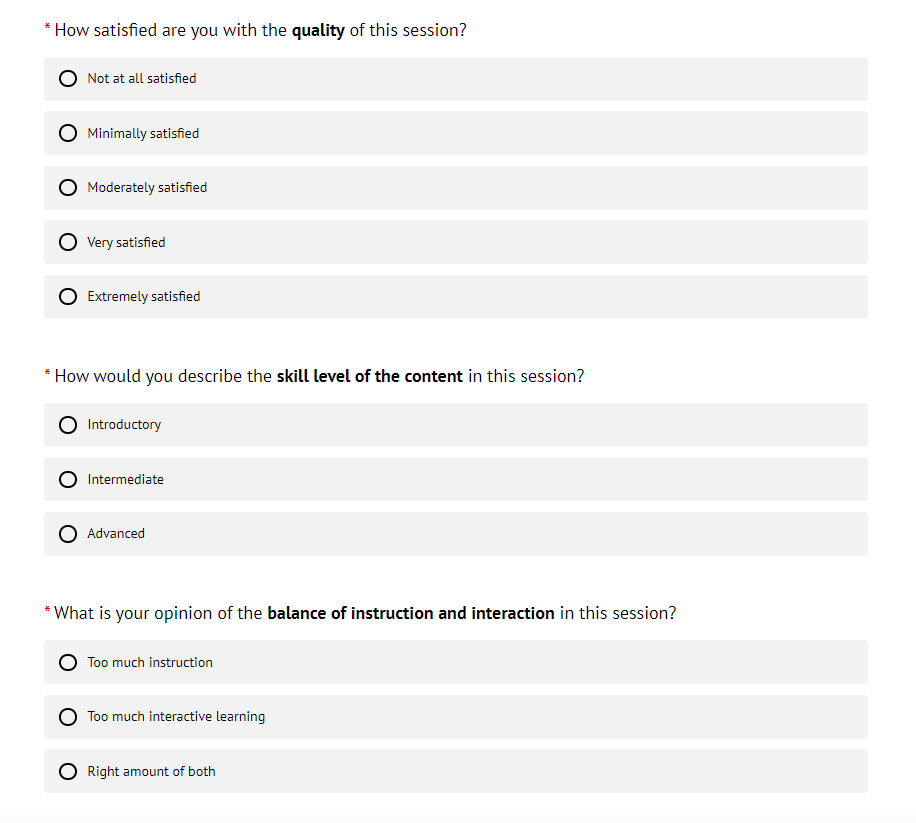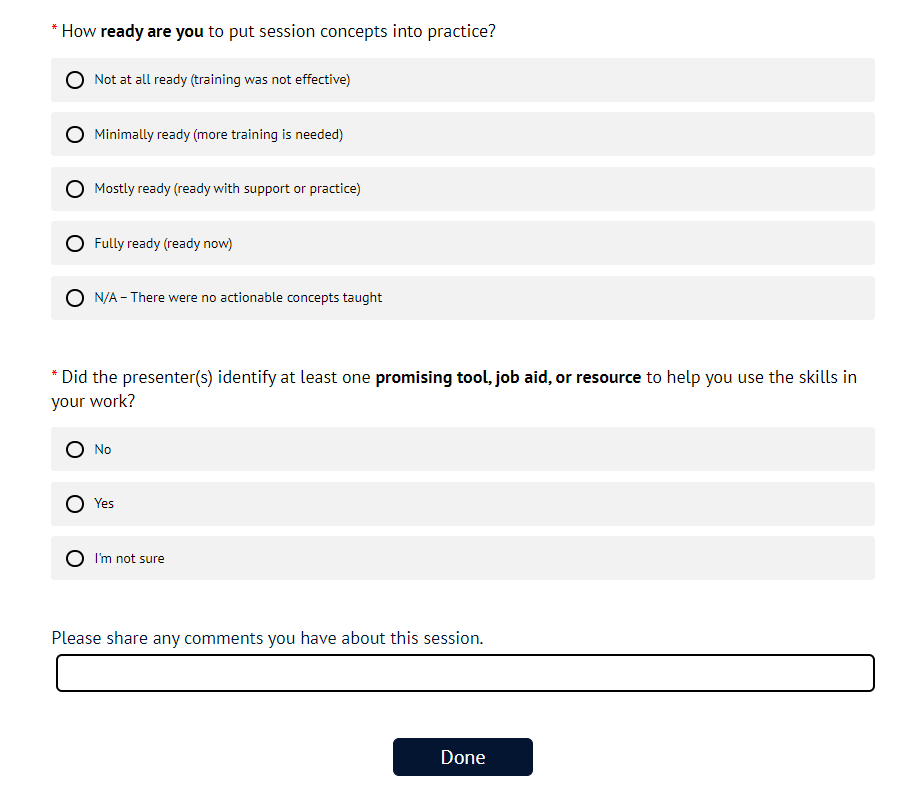 Please take a moment to tell us about your session experience. Your feedback is confidential, and we will not be able to identify you when we receive it. The questions should take less than 2 minutes to answer.