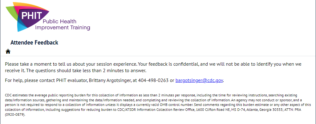 For help, please contact PHIT evaluator, Brittany Argotsinger, at 404-498-0263 or bargotsinger@cdc.gov.