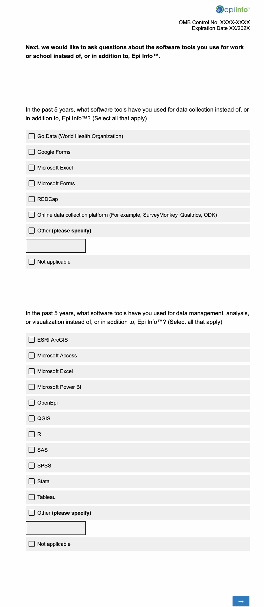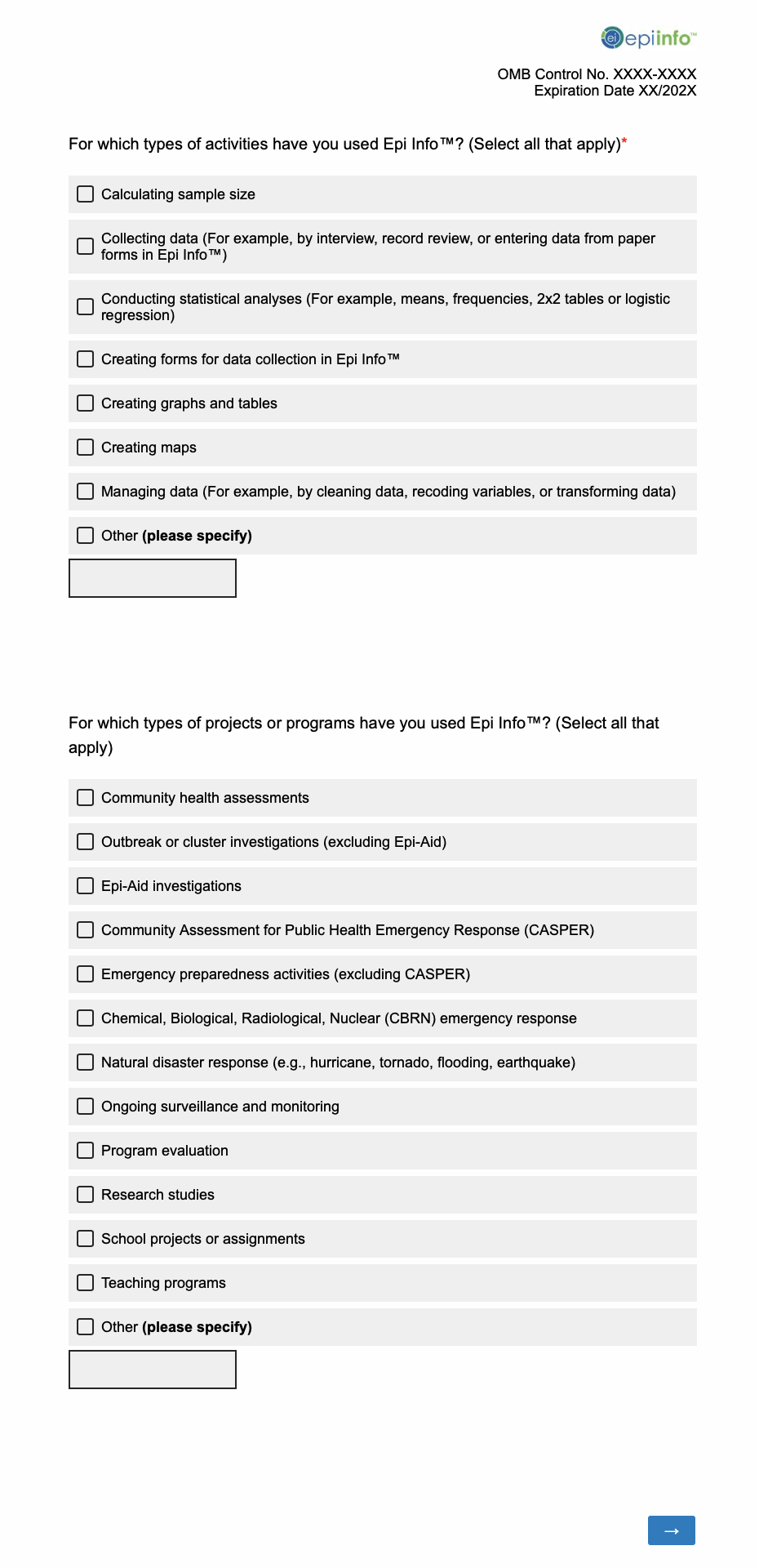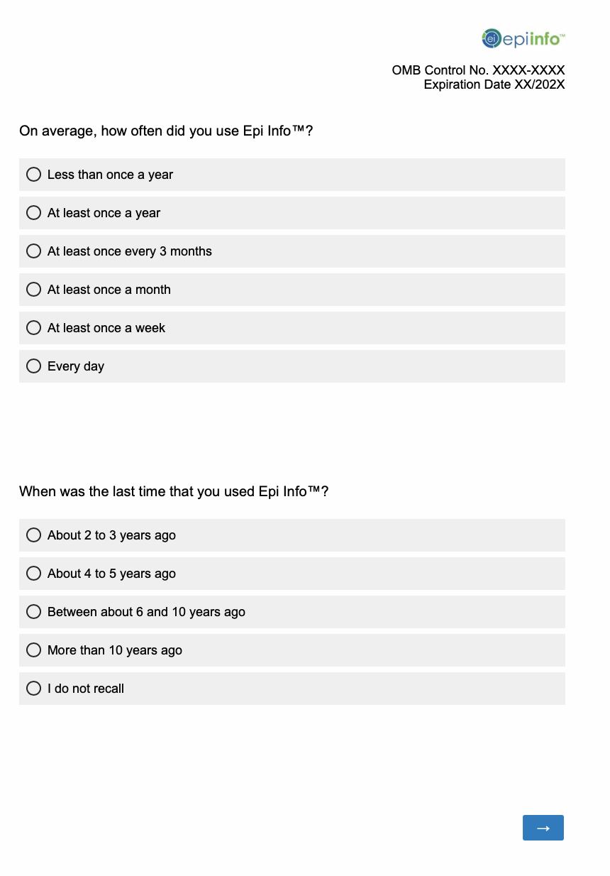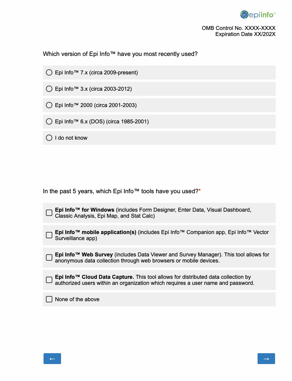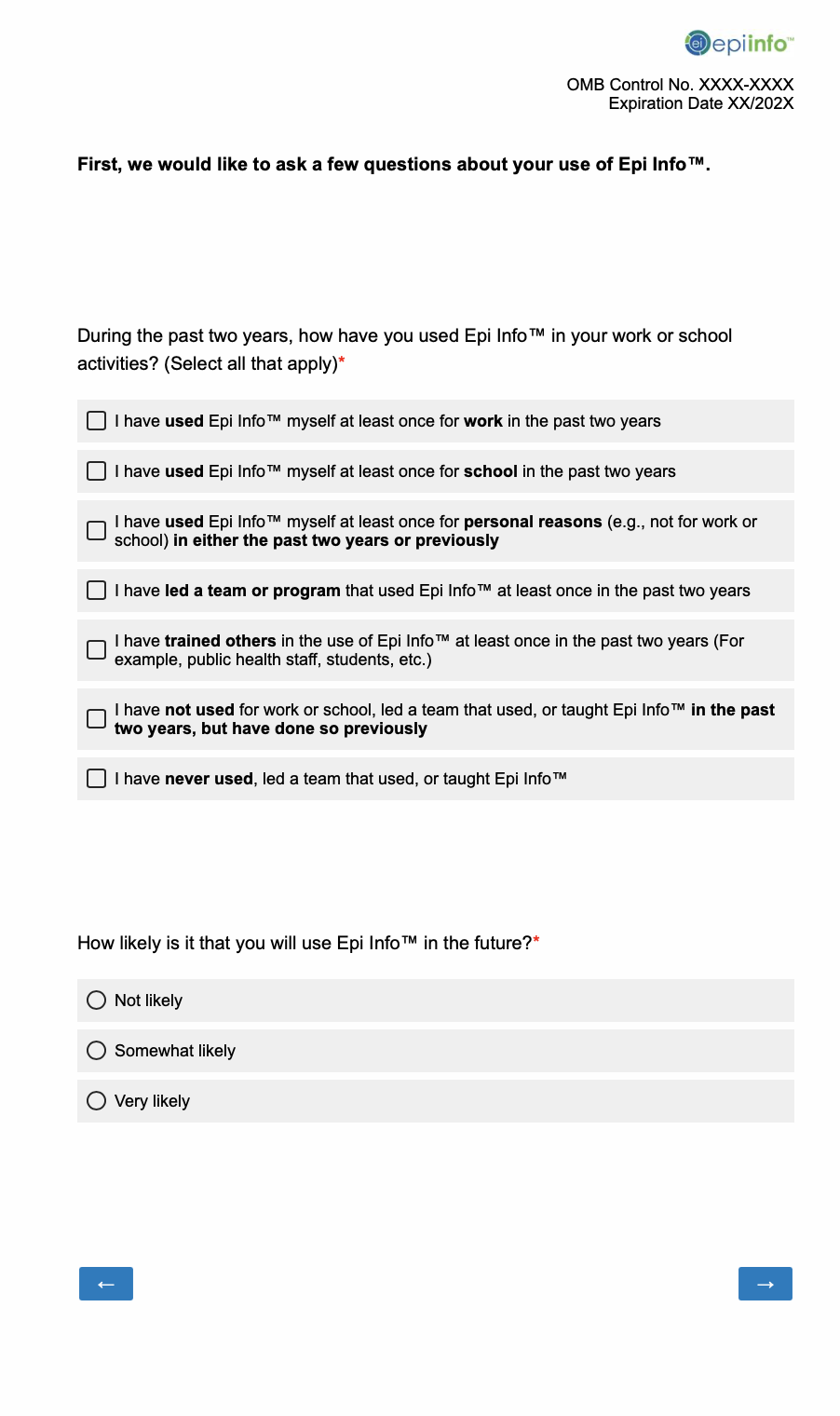 Attachment 2. Screen Shots of Online Version of Epi Info™ User Survey