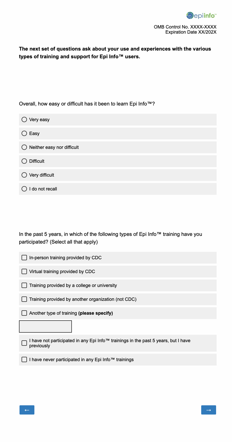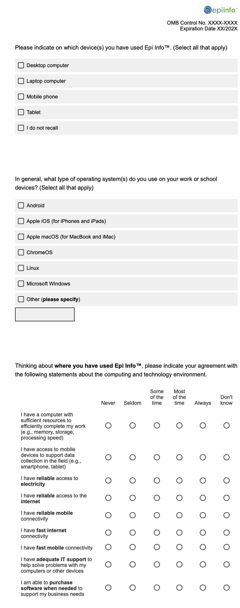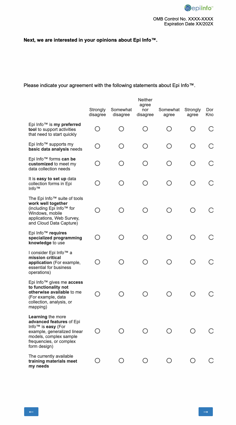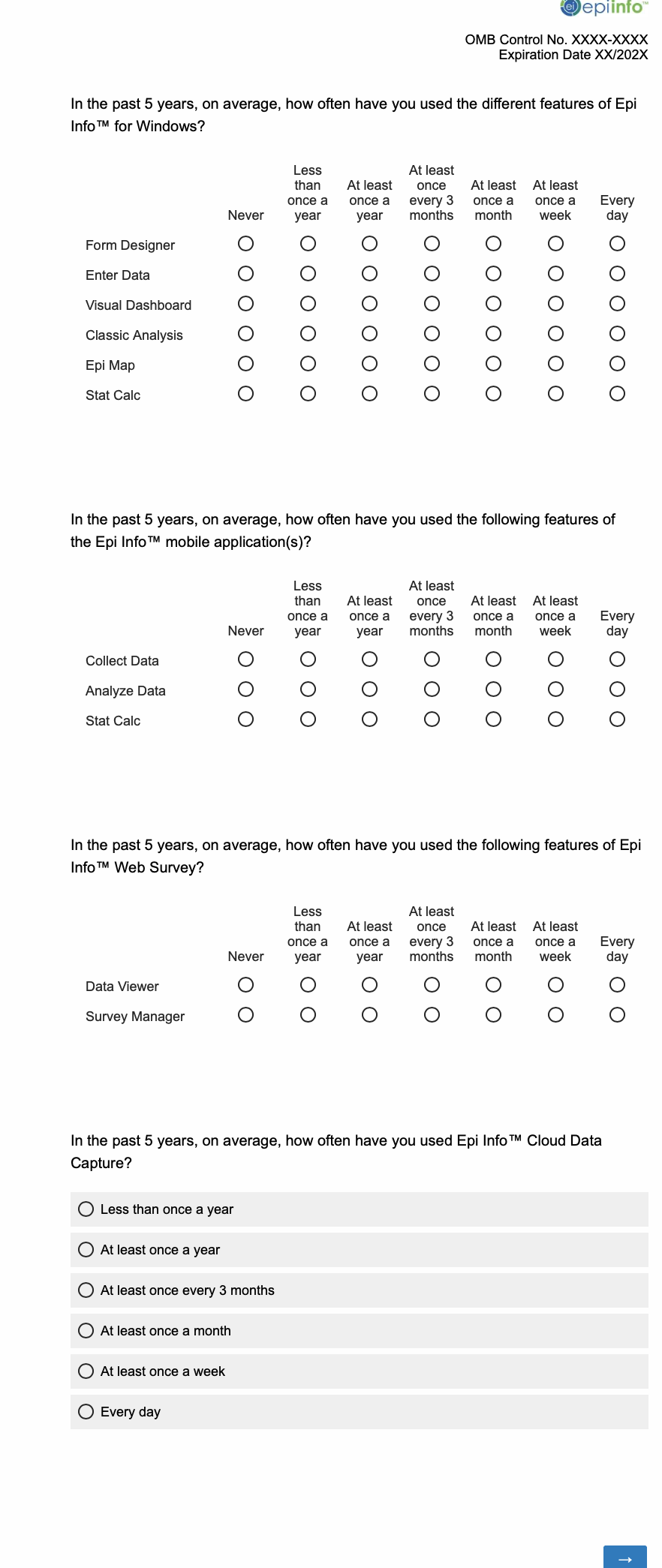 Attachment 2. Screen Shots of Online Version of Epi Info™ User Survey