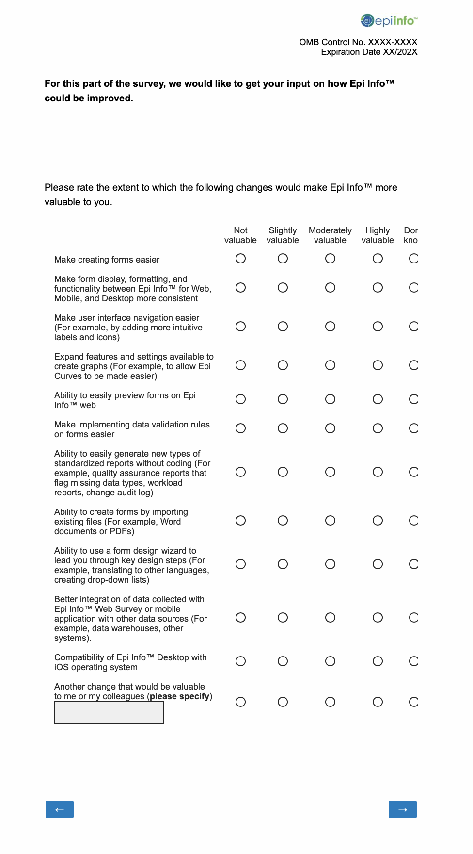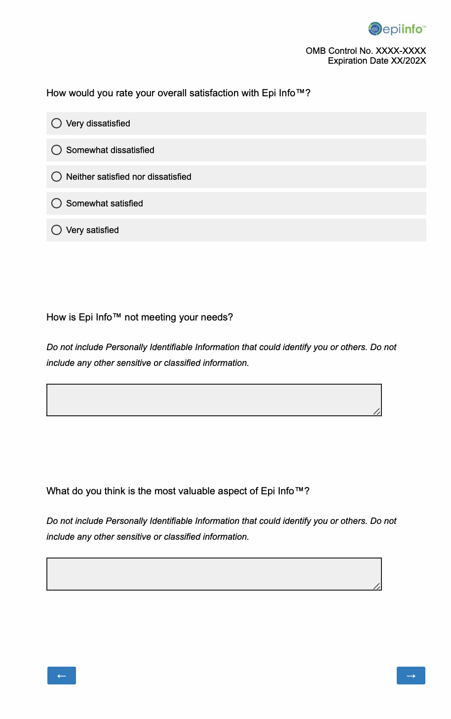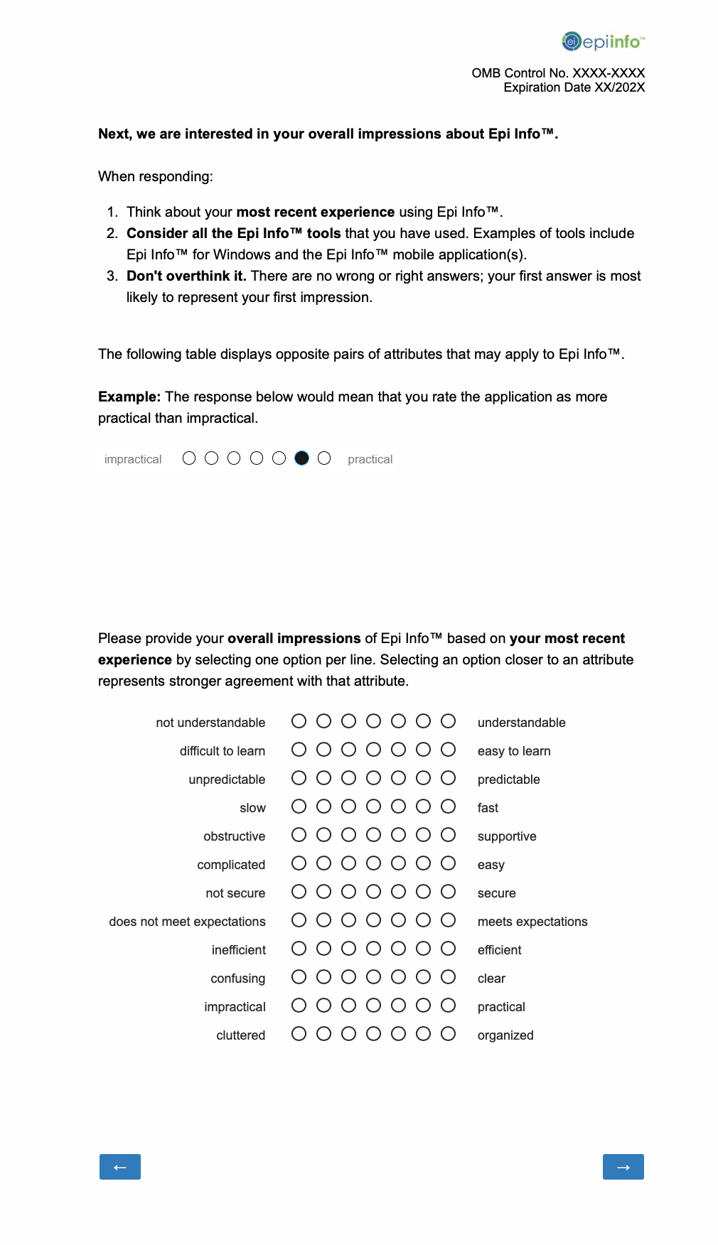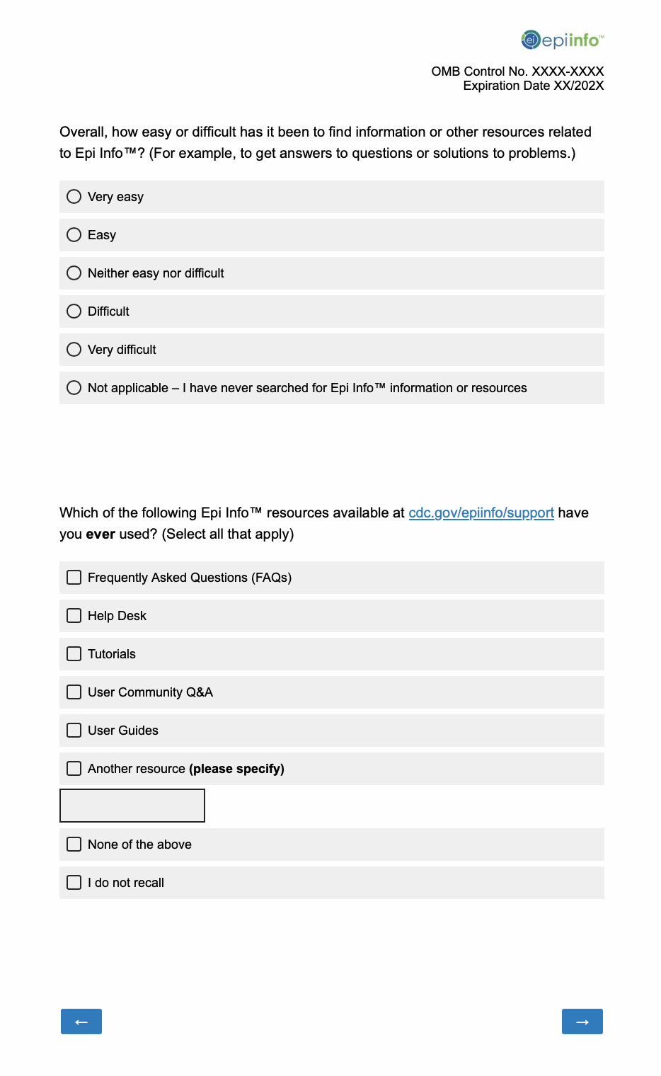 Attachment 2. Screen Shots of Online Version of Epi Info™ User Survey