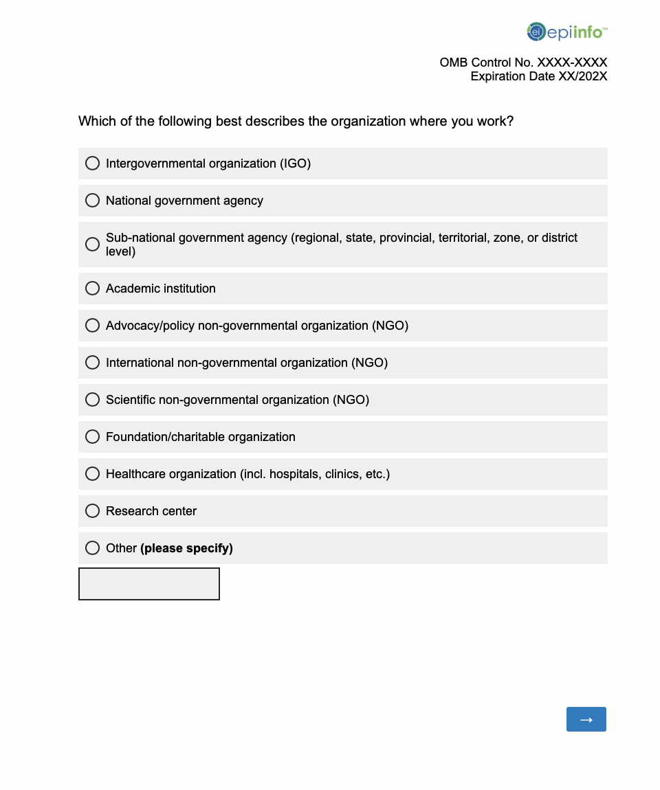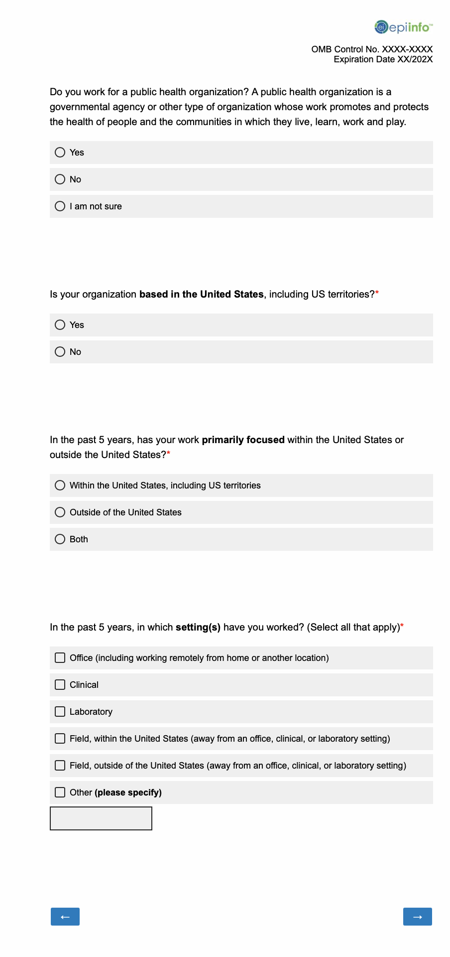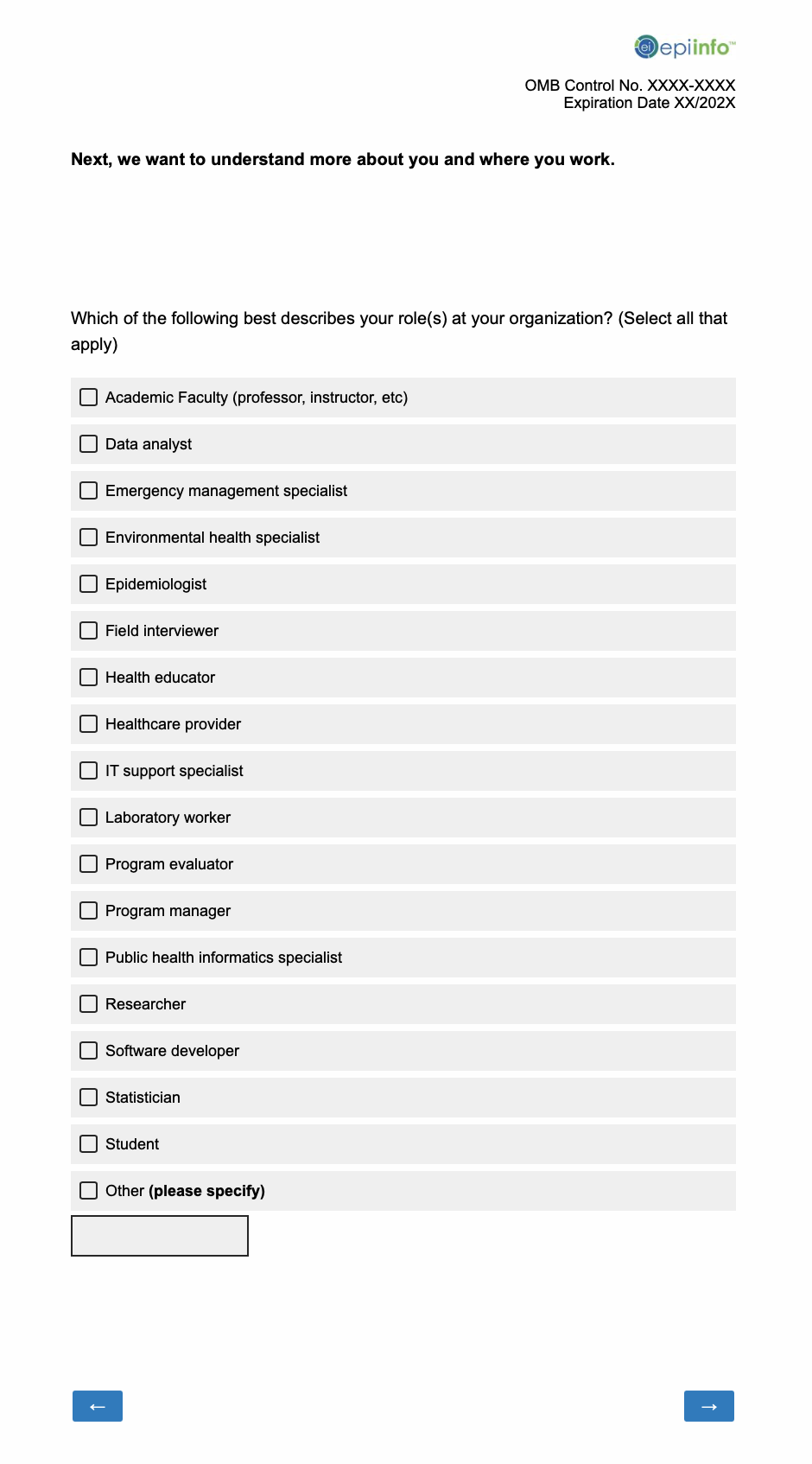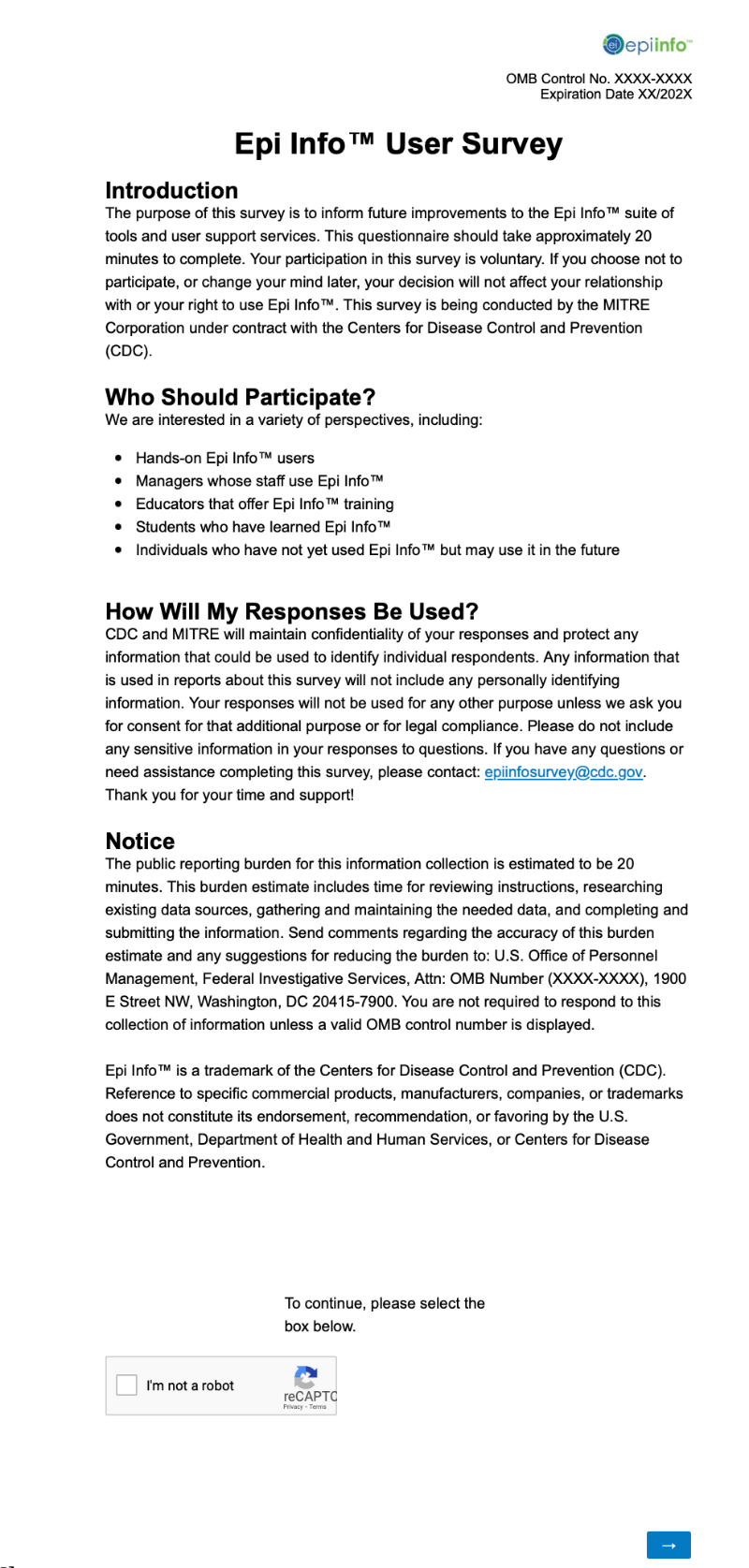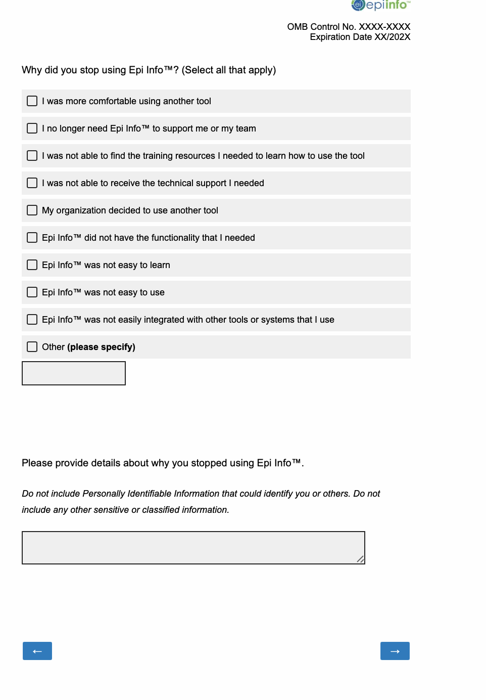 Attachment 2. Screen Shots of Online Version of Epi Info™ User Survey