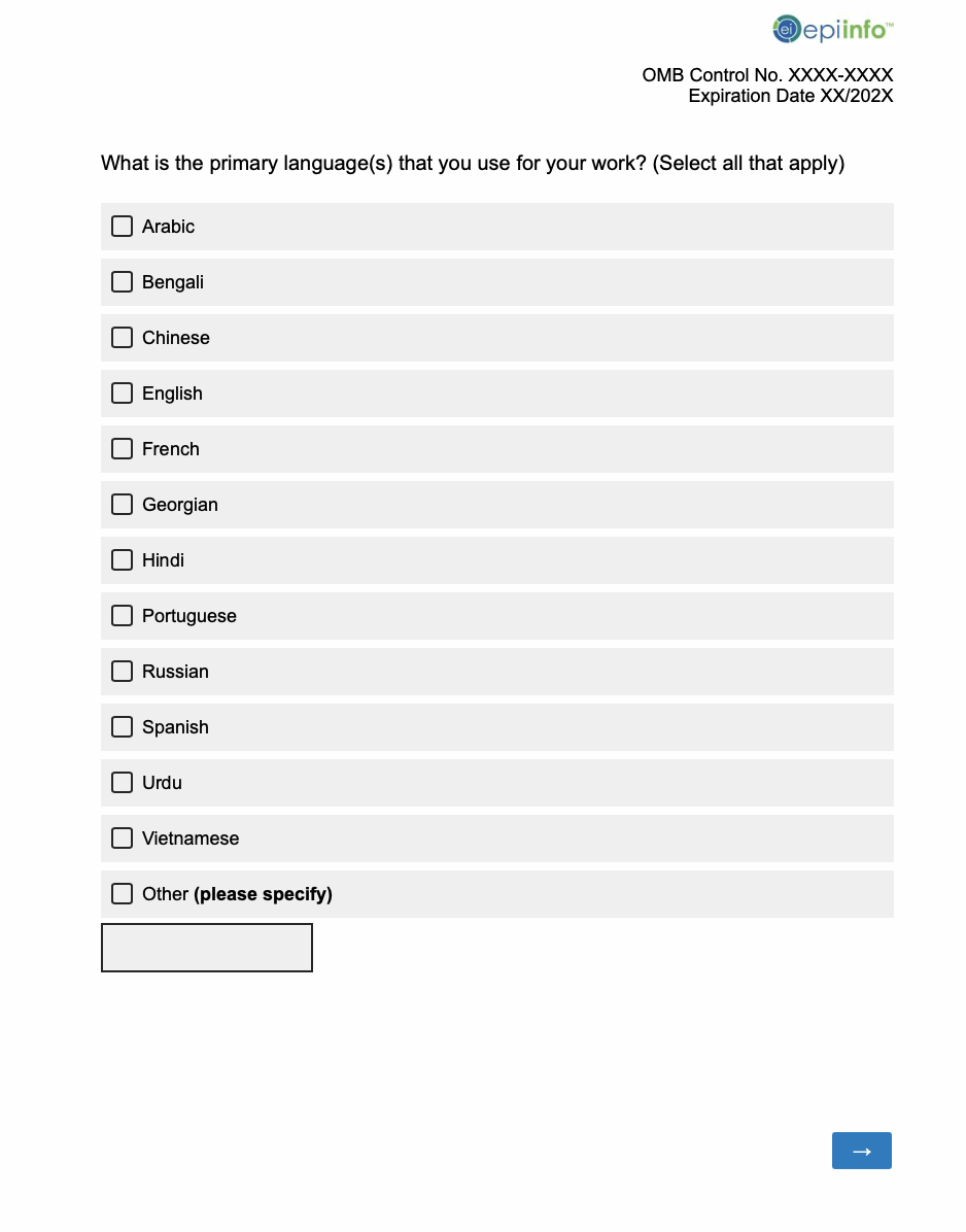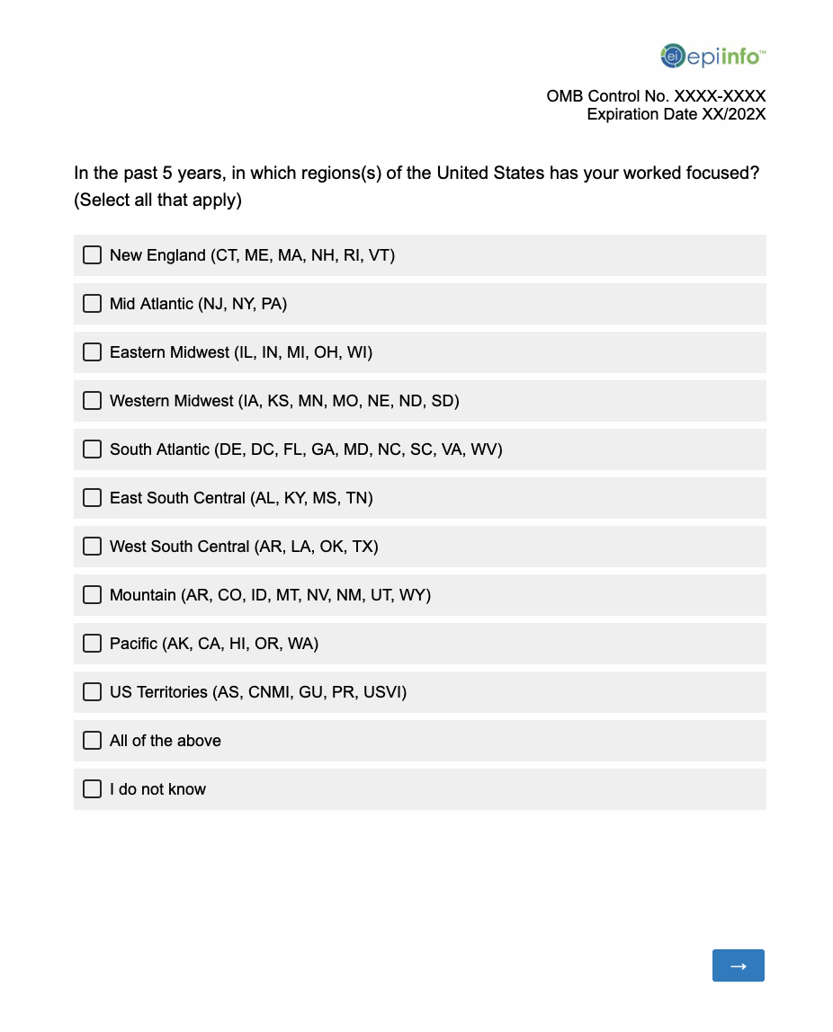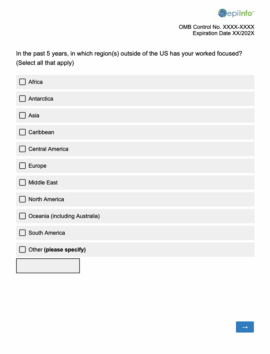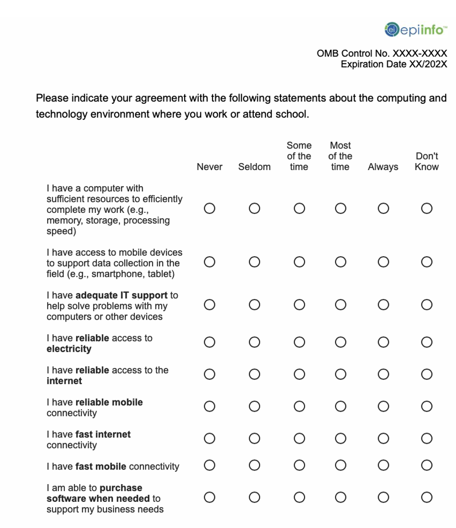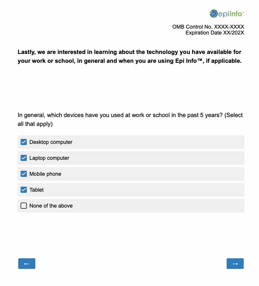Attachment 2. Screen Shots of Online Version of Epi Info™ User Survey