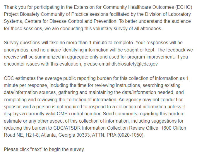 Survey 3: CDC Biosafety ECHO Follow-up Surveys