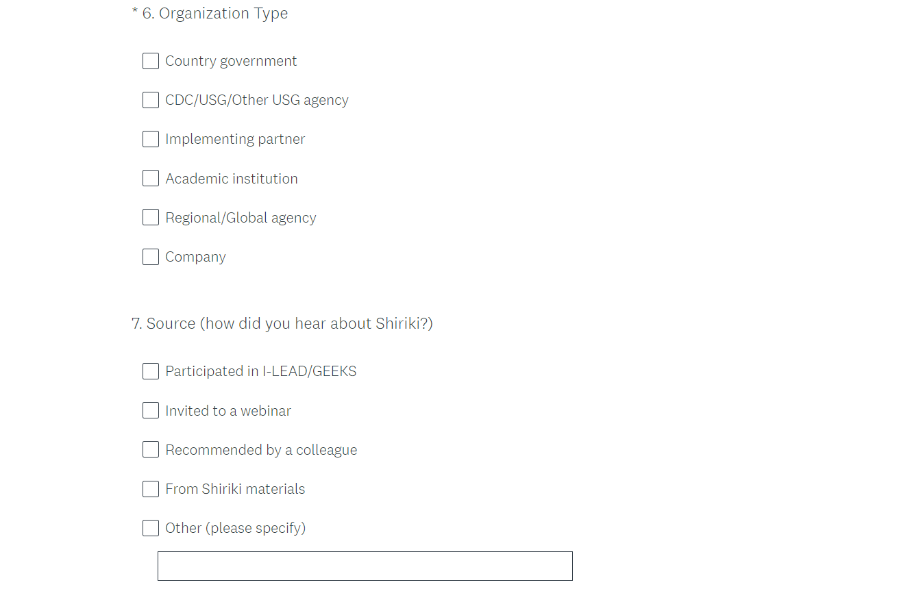 Non-members are invited to join the community but not required to do so: “If you are not a member of the Shiriki community and would like to be added, please go to the membership form after completing this survey. [ link to form]”