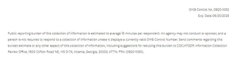 ⚠️ Notice: This form may be outdated. More recent filings and information on OMB 0920-1050 can be found here: