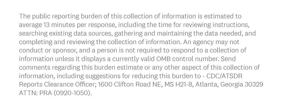 ⚠️ Notice: This form may be outdated. More recent filings and information on OMB 0920-1050 can be found here: