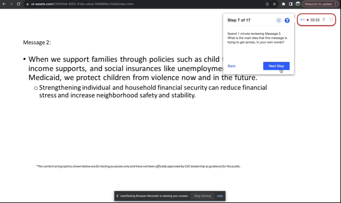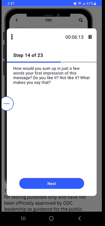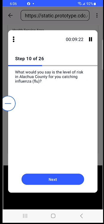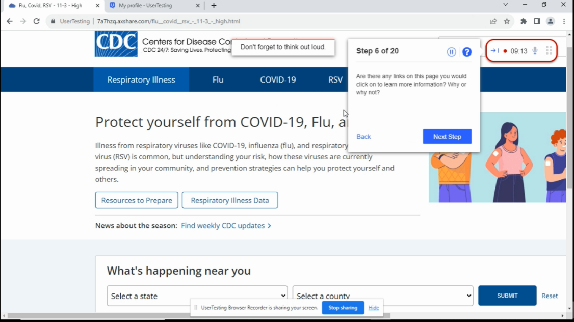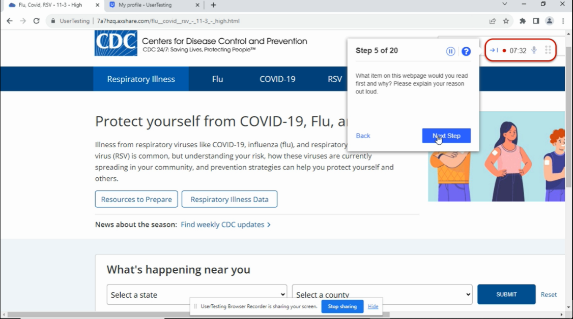 Please note: CDC will conduct just one of the following usability tests at a time. Up to 18 questions would be selected per test to stay within the 20-minute time limit.