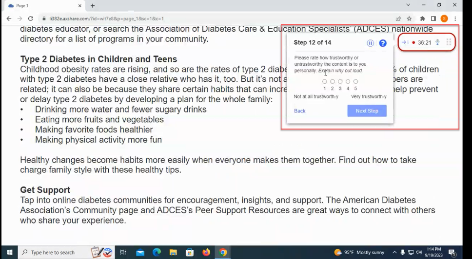 On a scale from 1 to 5, was it hard or easy for you to find information on the [county, state, other geographic area’s] [public health topic]? Please explain out loud the reason for your rating. [1-Very hard 5-Very easy]