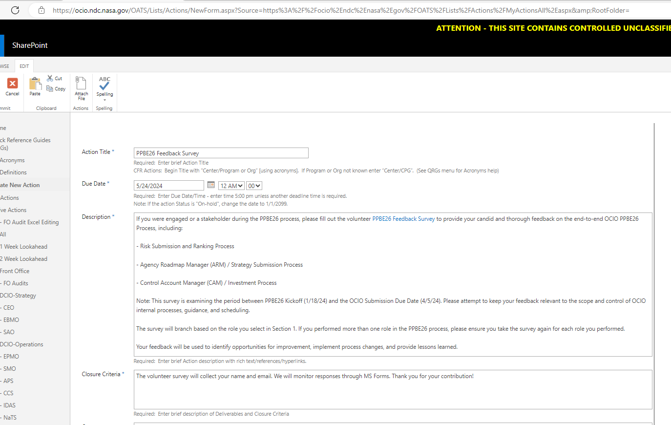 We will submit using the OCIO Action Tracking