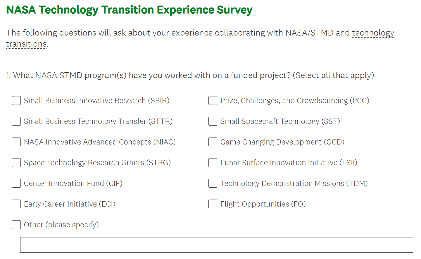 Tech Transitions Survey Screen Shots