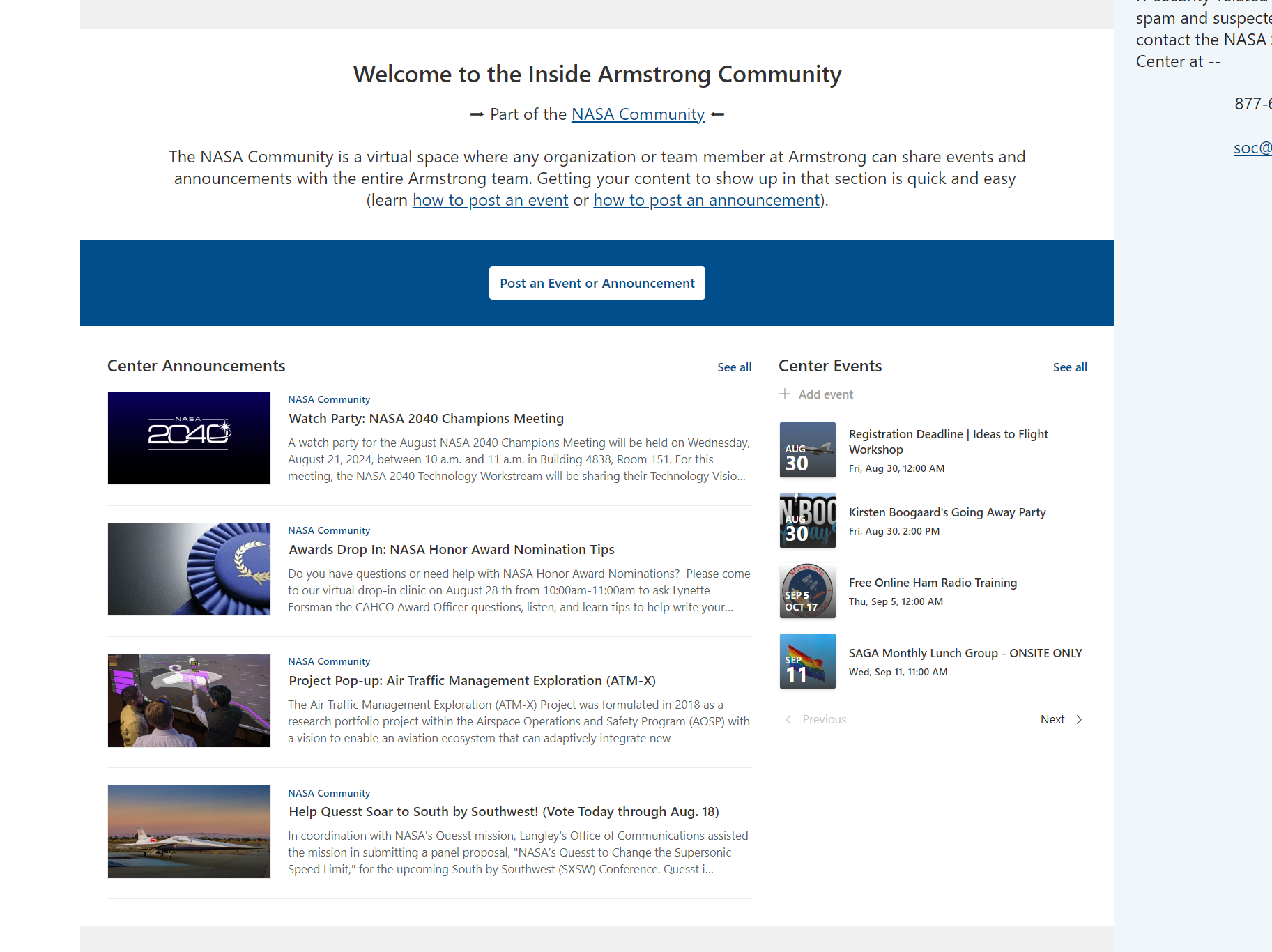 An email from our Center Director’s office would go out to AFRC-Public (all civil servant and contractor employees at NASA), and it would look like this: