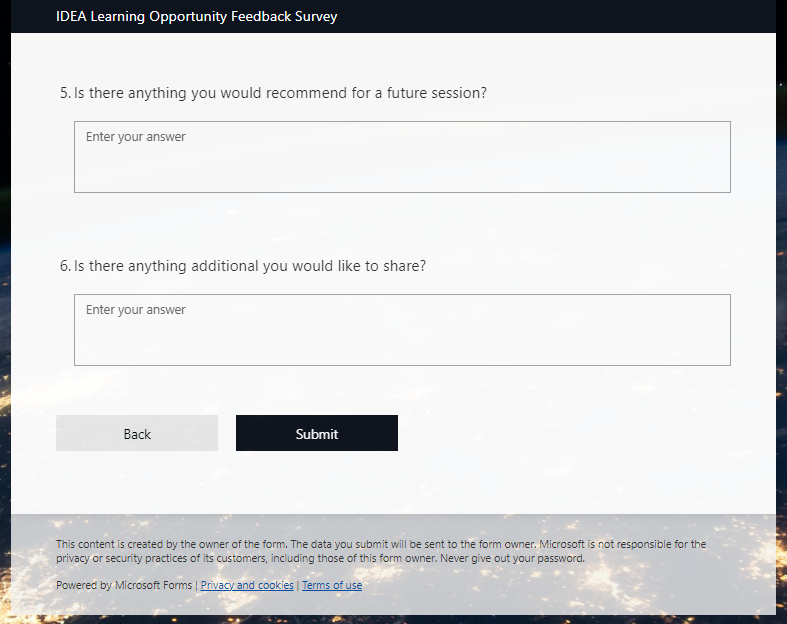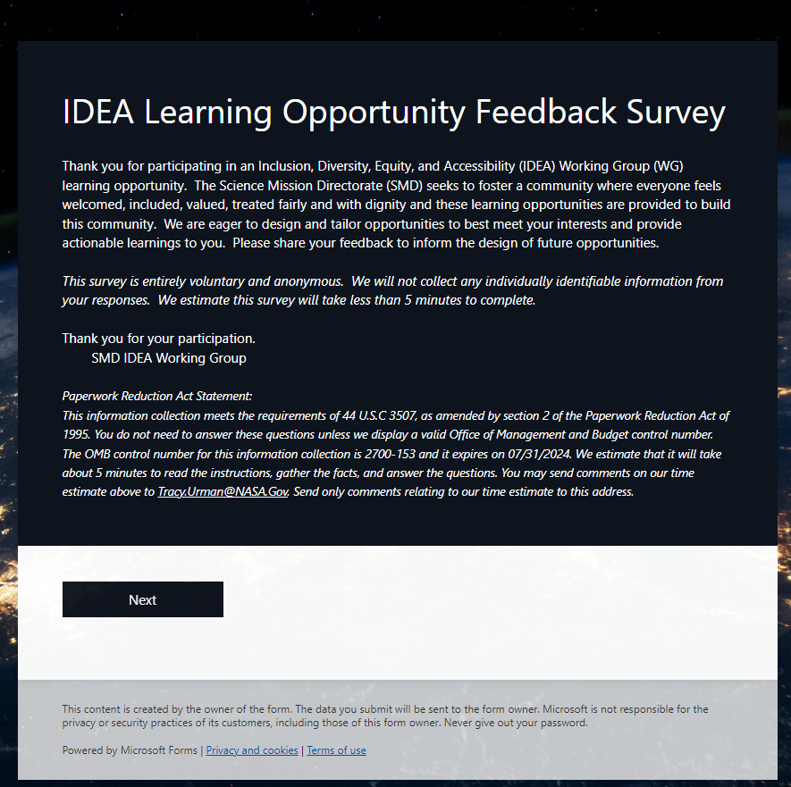 Screen shots of SMD Learning Opportunity Feedback Survey