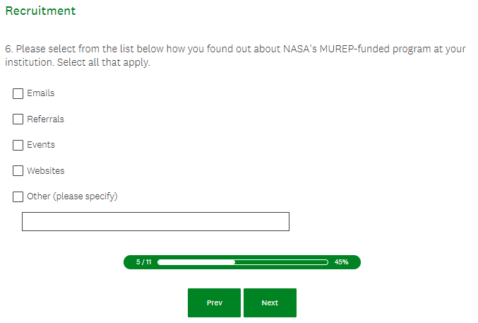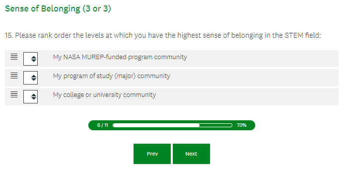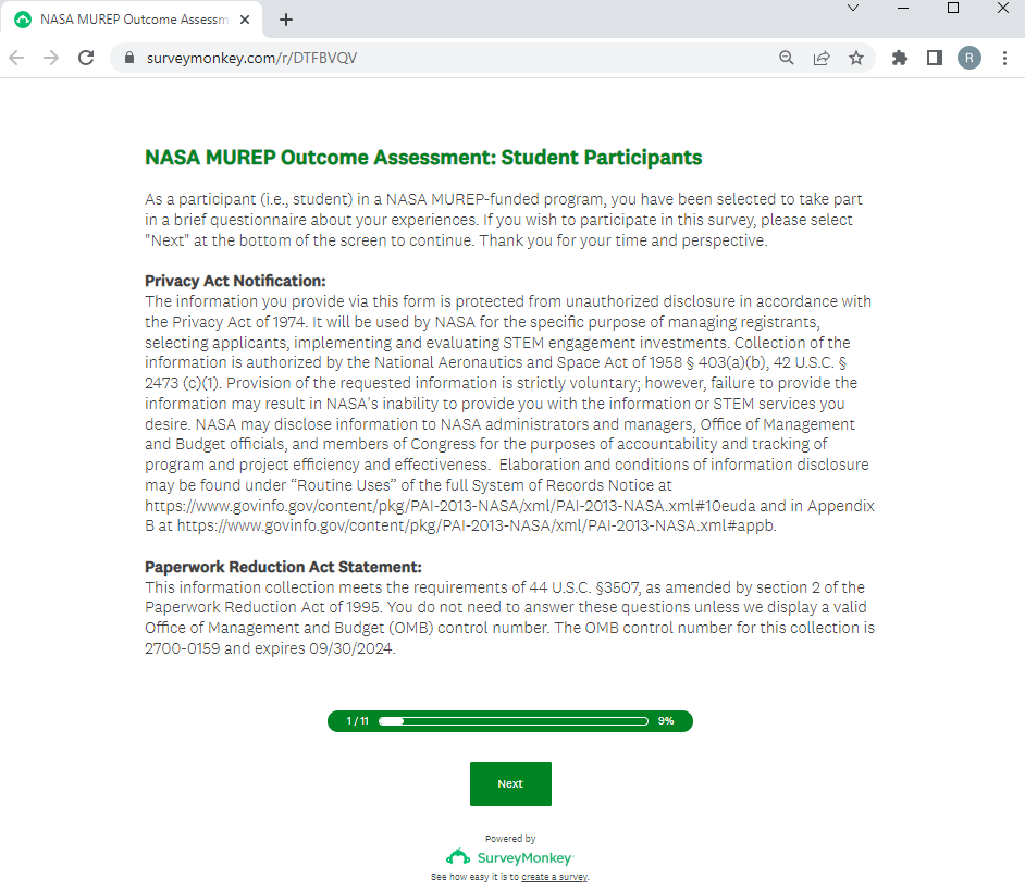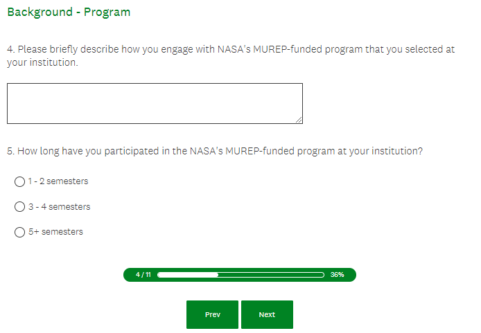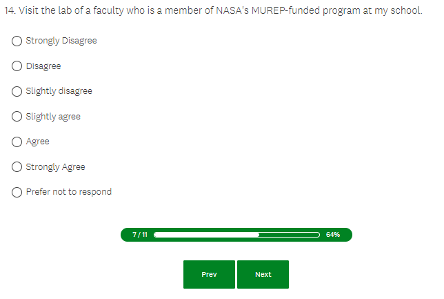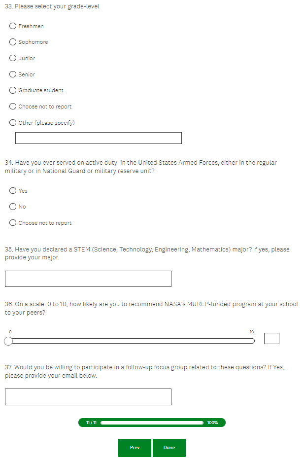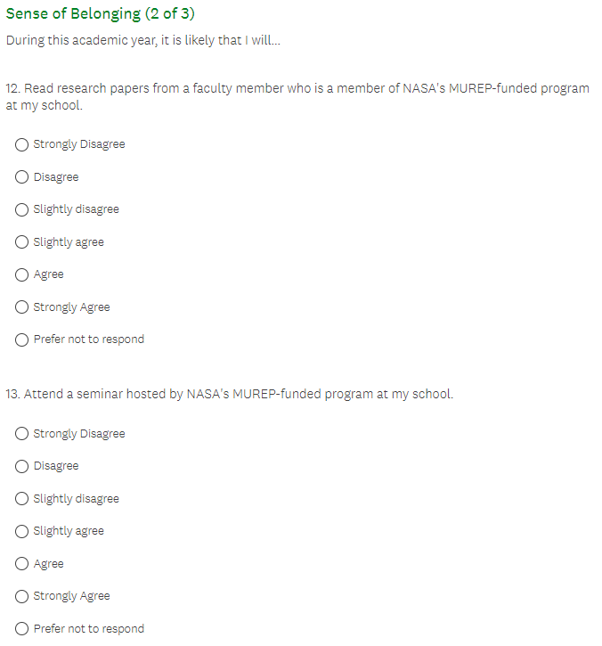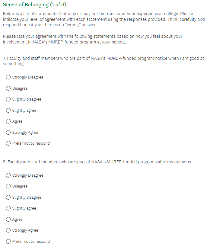 NASA MUREP Outcome Assessment (Pilot) - Student Survey Screenshots