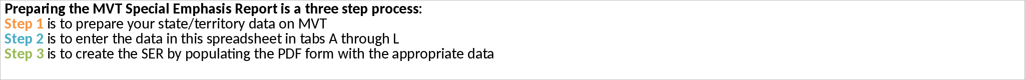 Step 1: Preparing State/Territory Data | Step 2: Entering Data | Step 3: Creating Special Emphasis Report | ||||||||||||||||||||||||||||||