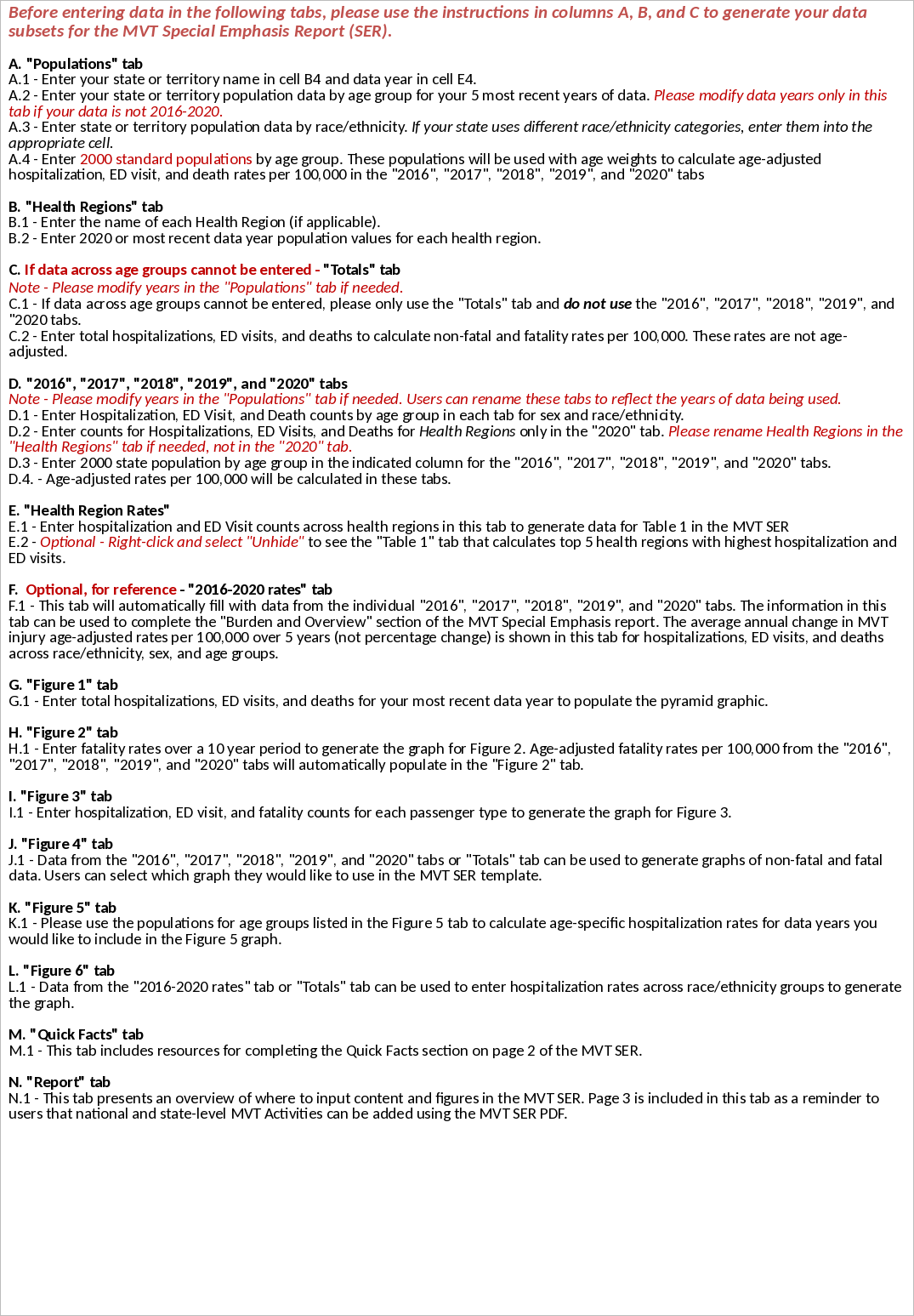 If you do not have population data for a certain year, please do not delete the rows so that formulas in other spreadsheet tabs will work. | MVT-Specific State Injury Indicators Report | ||||||||||||||||||||