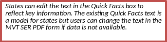 MVT State Facts: | Data Source: | Web Link: | Sub-category | Table | Comments | |
