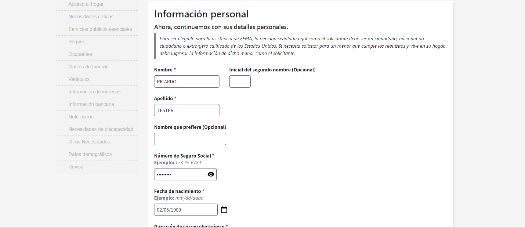 FEMA Form FF-104-F Tele-Registration, Registro Para Asistencia De Desastre