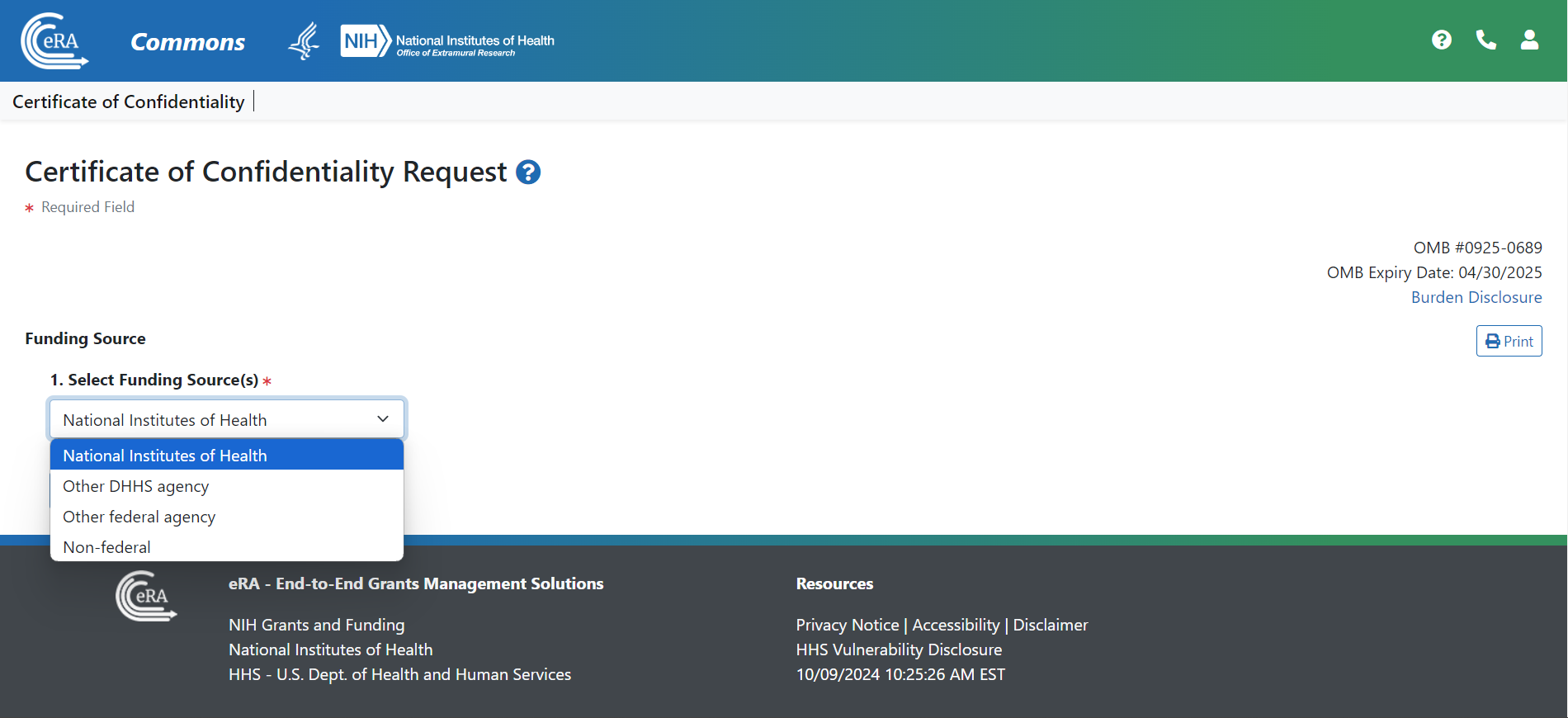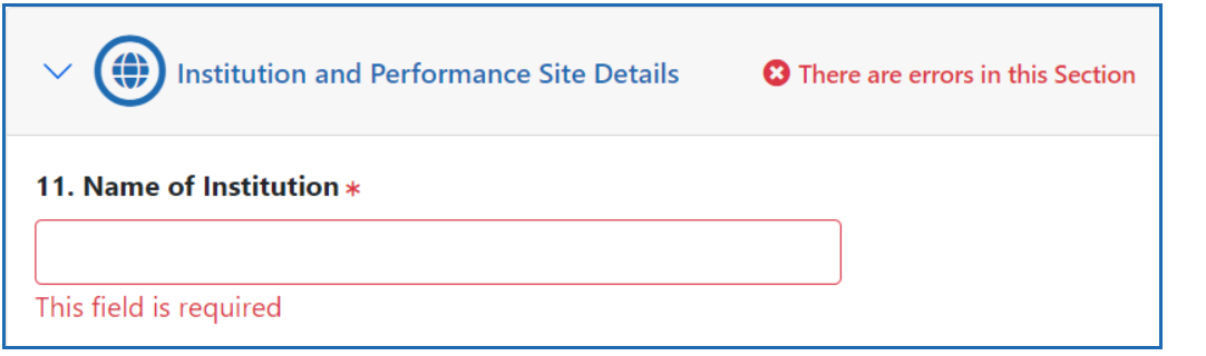 Once corrected, the user will repeat the steps above to submit the CoC request. Once the request to apply for a CoC has been completed and submitted, it will trigger the system to send an automated email to the email address entered for the Institutional Official (IO).