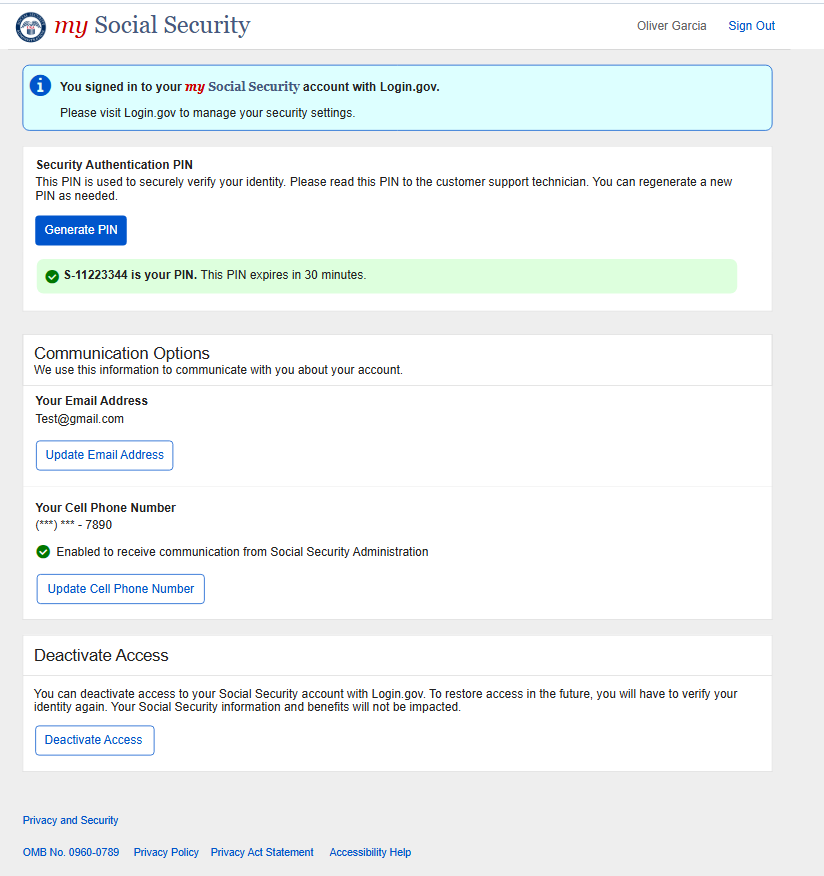 User leverages the Vanity URL and signs in to their mySocialSecurity account using their Login.Gov or ID.me credential