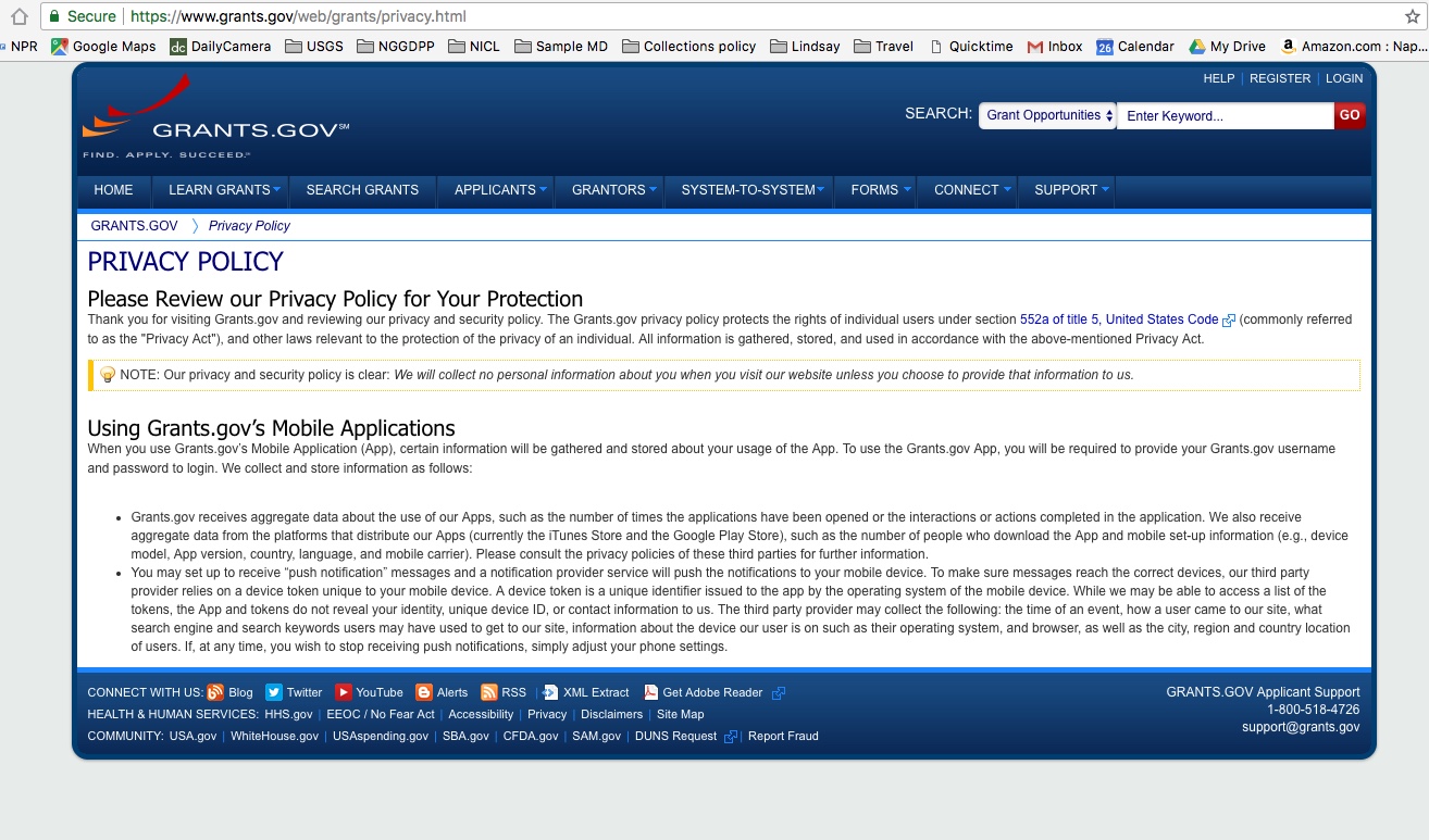 Grants.gov privacy statement