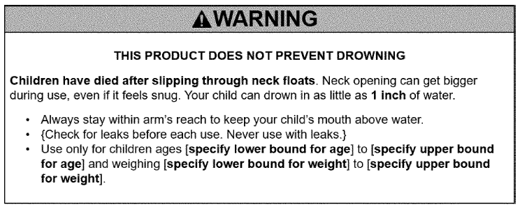Figure 1: Warning for Child Neck Floats. Image not to scale.