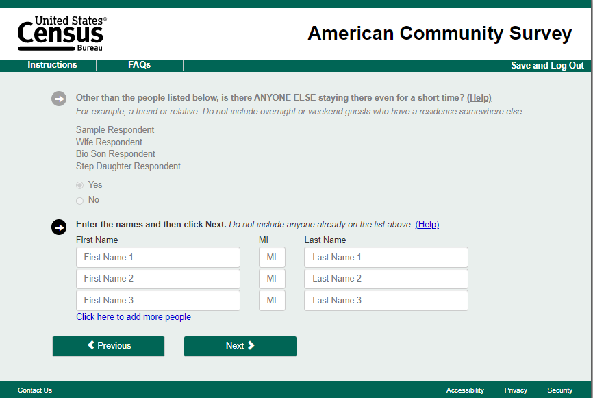 NAME_FNAME – Including yourself, are the names of all the people living or staying at this address?