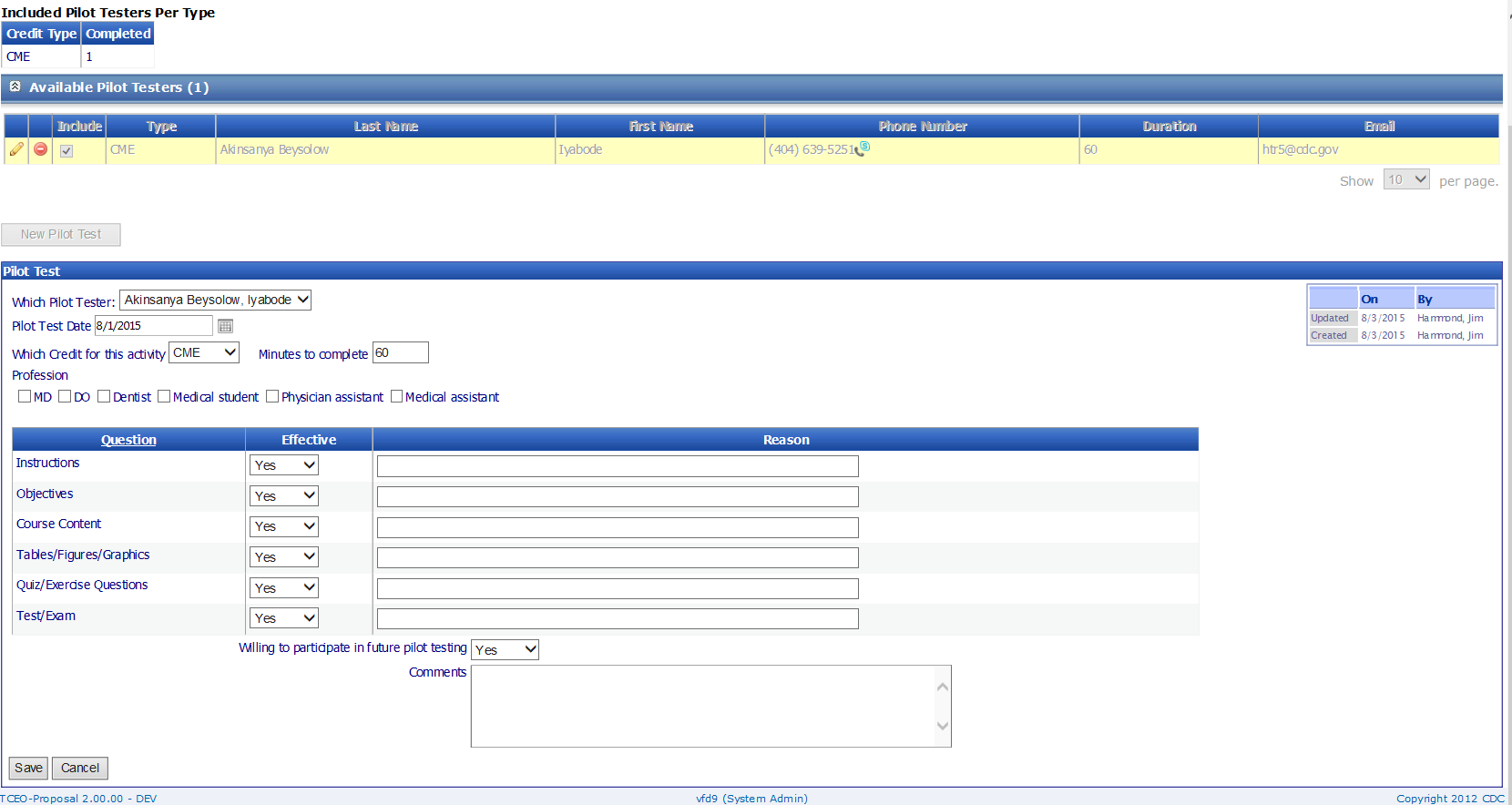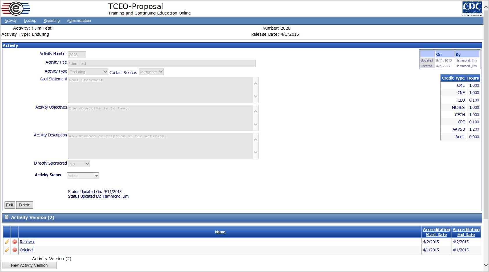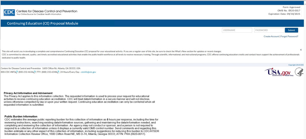 The purpose of this document is to list the data elements collected online through the Continuing Education Online Proposal. The CE Proposal is a mechanism for course developers and CE consultants of the Centers for Disease Control and Prevention (CDC) to request and submit their educational activities for accreditation review and approval.