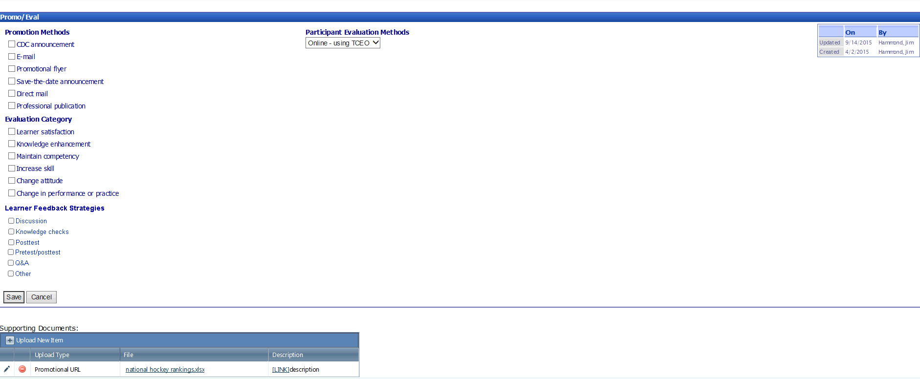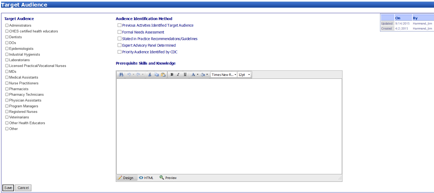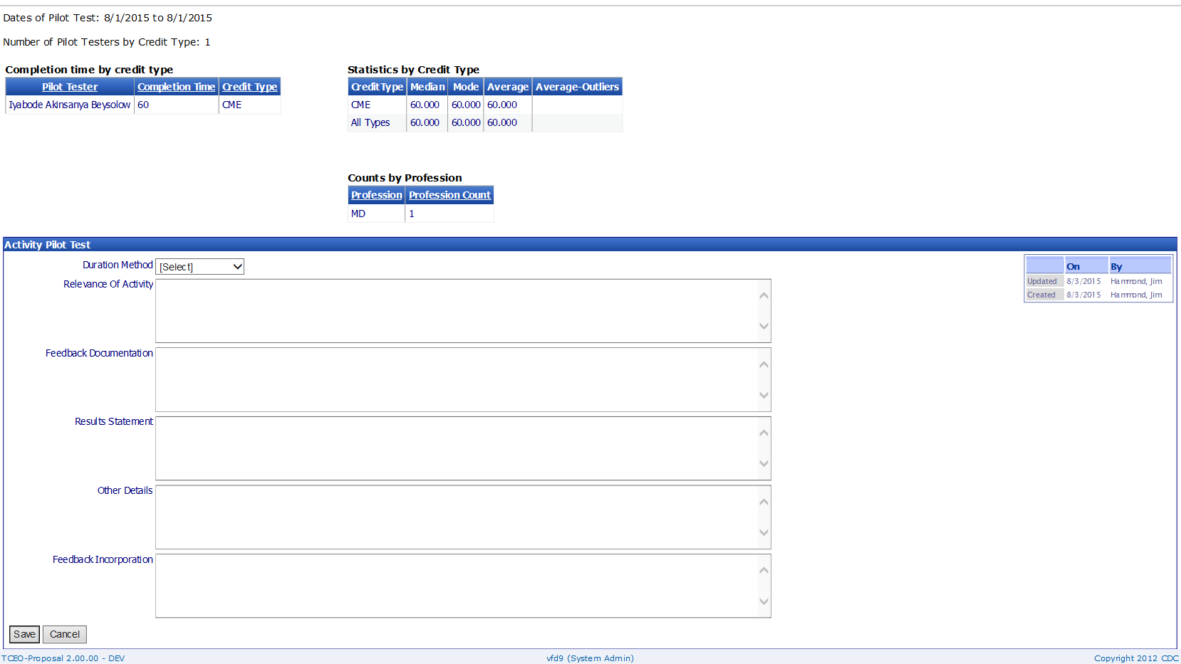 The purpose of this document is to list the data elements collected online through the Continuing Education Online Proposal. The CE Proposal is a mechanism for course developers and CE consultants of the Centers for Disease Control and Prevention (CDC) to request and submit their educational activities for accreditation review and approval.