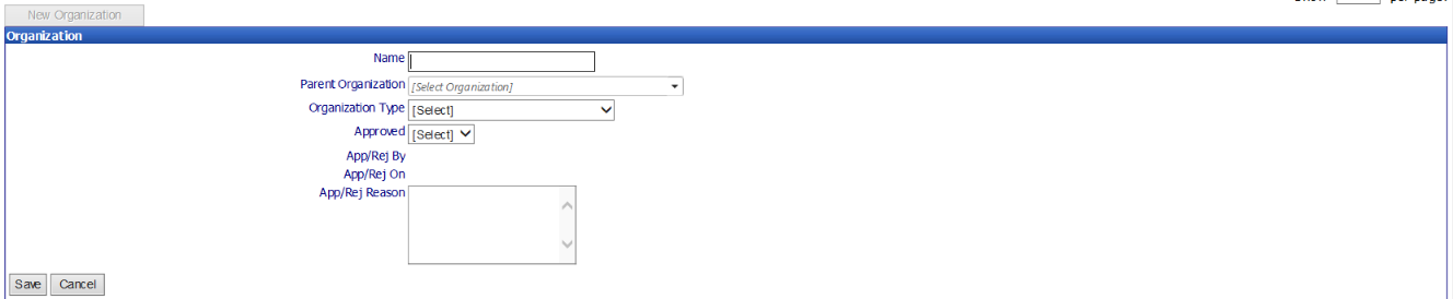 Drop Down – Organizations previously entered |