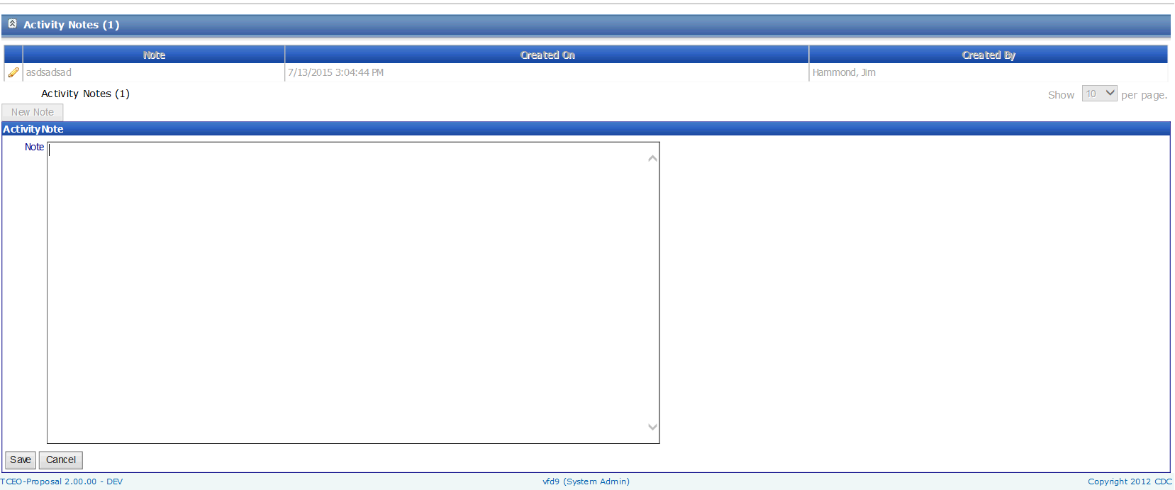 Figure 22 – Activity Notes Page