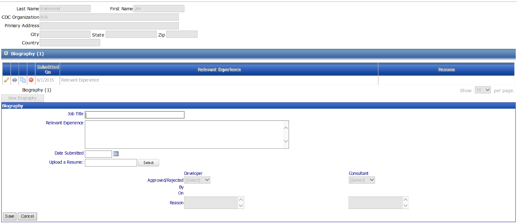 Table 24 – Biography Page Data Elements