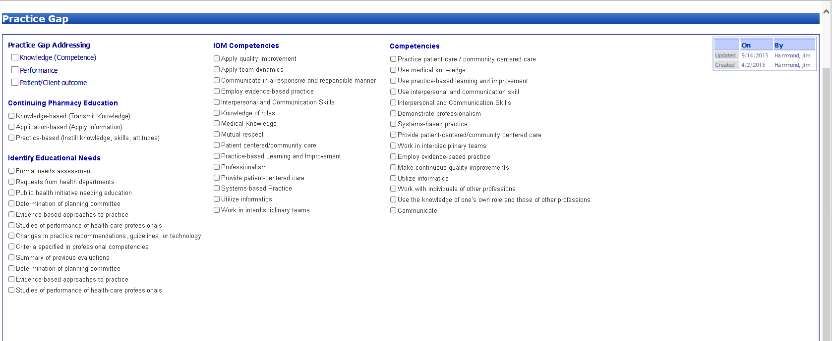 Multi Select – IOM Competencies |