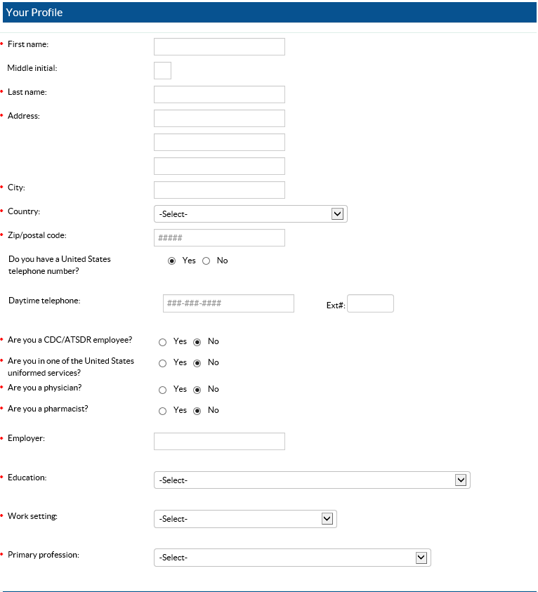 The purpose of this document is to list all data elements collected online from the learners that wish to obtain continuing education credit through the Centers for Disease Control and Prevention’s (CDC) Training and Continuing Education Online System (TCEO).