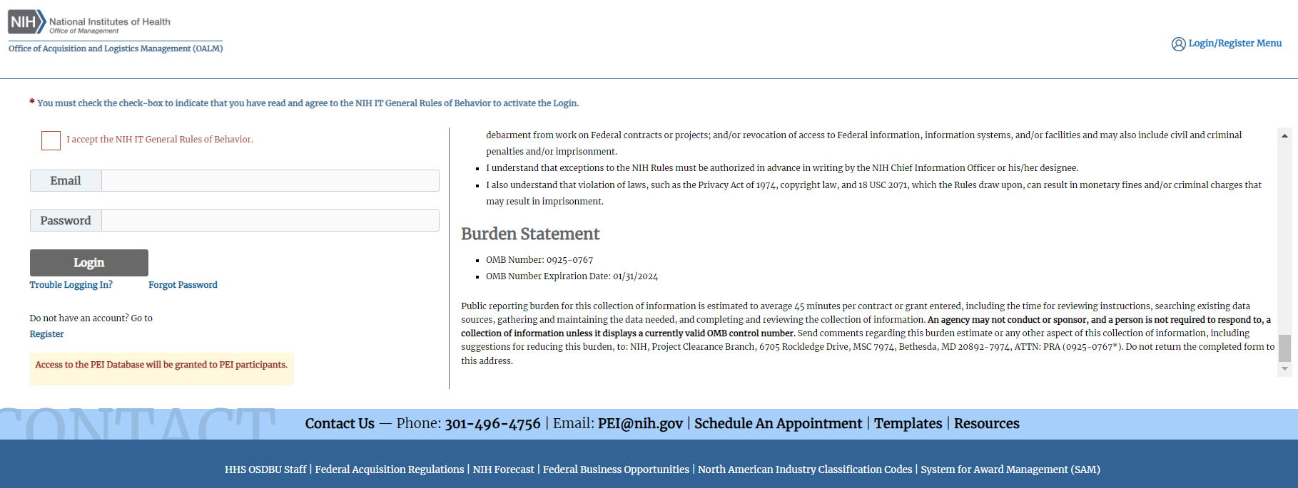 Burden Statement (is at bottom of log in screen, scroll down to the bottom of the log in screen to view the Burden Statement)