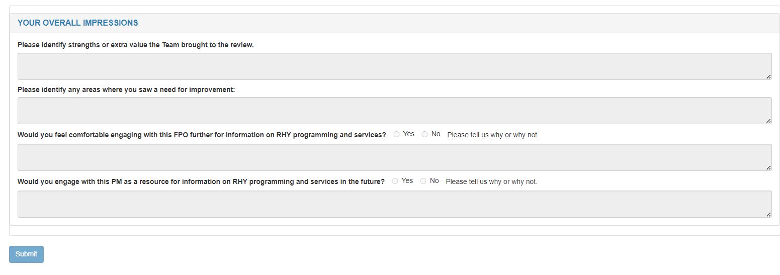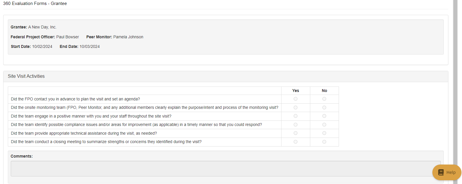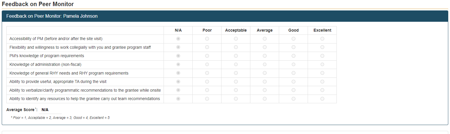 PAPERWORK REDUCTION ACT OF 1995 (Pub. L. 104-13) STATEMENT OF PUBLIC BURDEN: The purpose of this information collection is to collect feedback on RHY on-site monitoring processes. Public reporting burden for this collection of information is estimated to average 10 minutes per response, including the time for reviewing instructions, gathering and maintaining the data needed, and reviewing the collection of information. This is a voluntary collection of information. An agency may not conduct or sponsor, and a person is not required to respond to, a collection of information subject to the requirements of the Paperwork Reduction Act of 1995, unless it displays a currently valid OMB control number. The OMB # is 0970-0401 and the expiration date is 05/31/2027. If you have any comments on this collection of information, please contact help@gmatterstech.com.