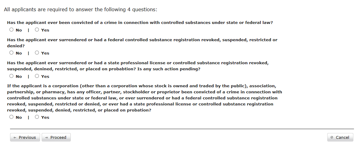 Separated into dedicated New and Renewal Manuals Updated for new online application Changed all references and acronyms for Office of Diversion Control to DC and SID |