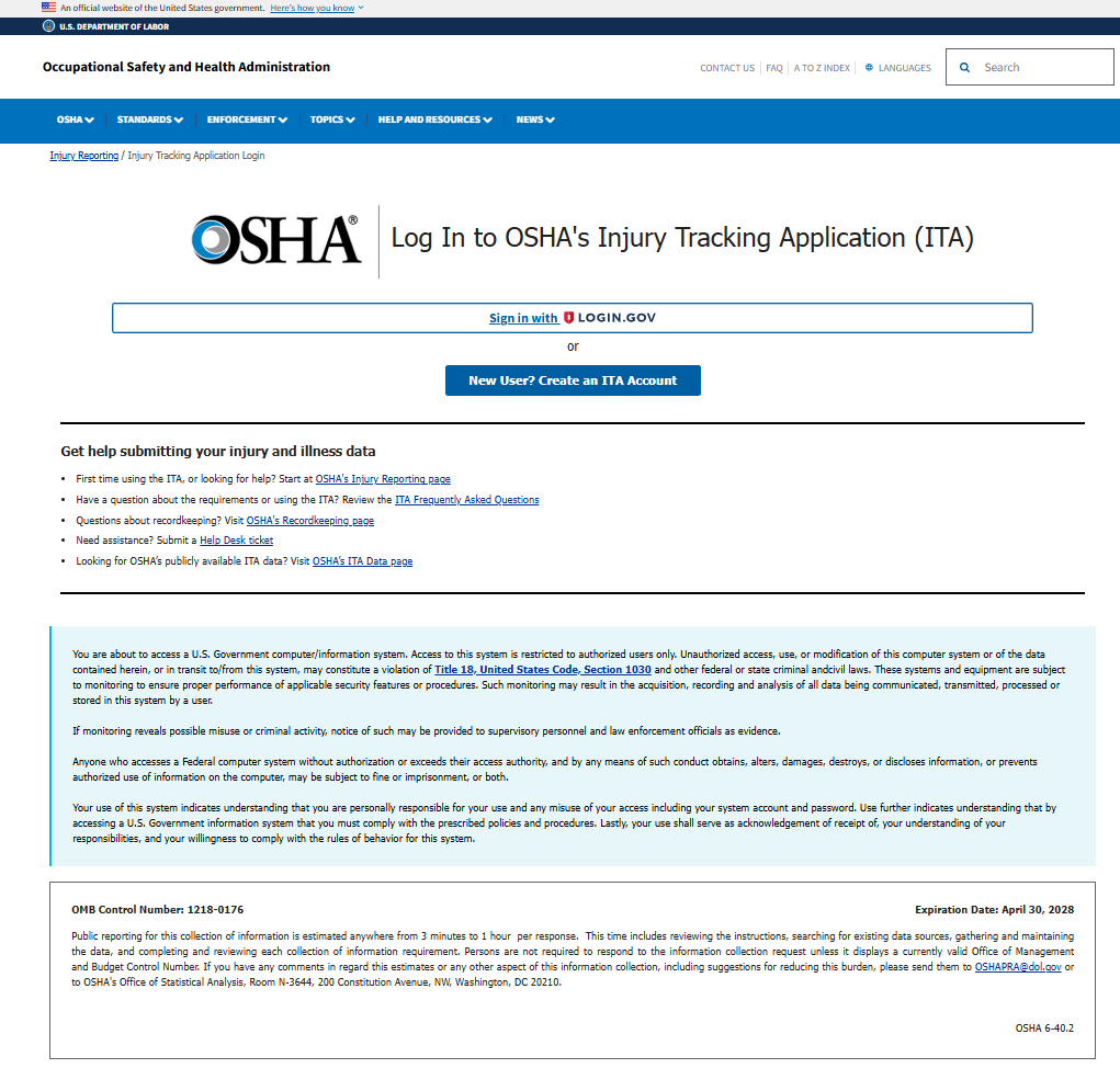 OMB Control Number 1218-0176 – Justification of Non-Substantive Change in the Injury Tracking Application (ITA), 2025