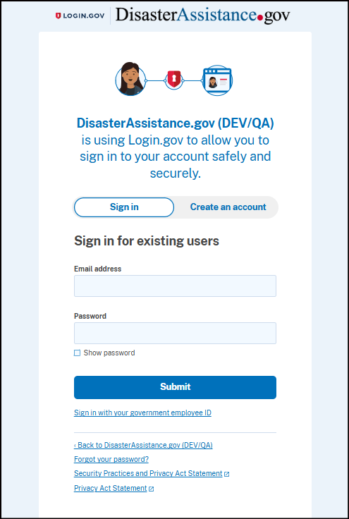You will create a Login.gov account to sign in if you don't have one yet.
